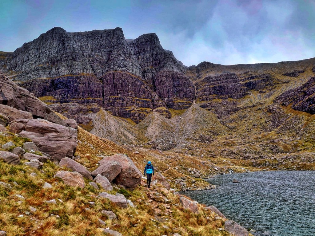 The famous Coire Mhic Fhearchair is reached during this descent; this is the most spectacular of all Torridon’s corries, so although that was something to look forward to we still needed to get down to the bottom safely in order to see it.