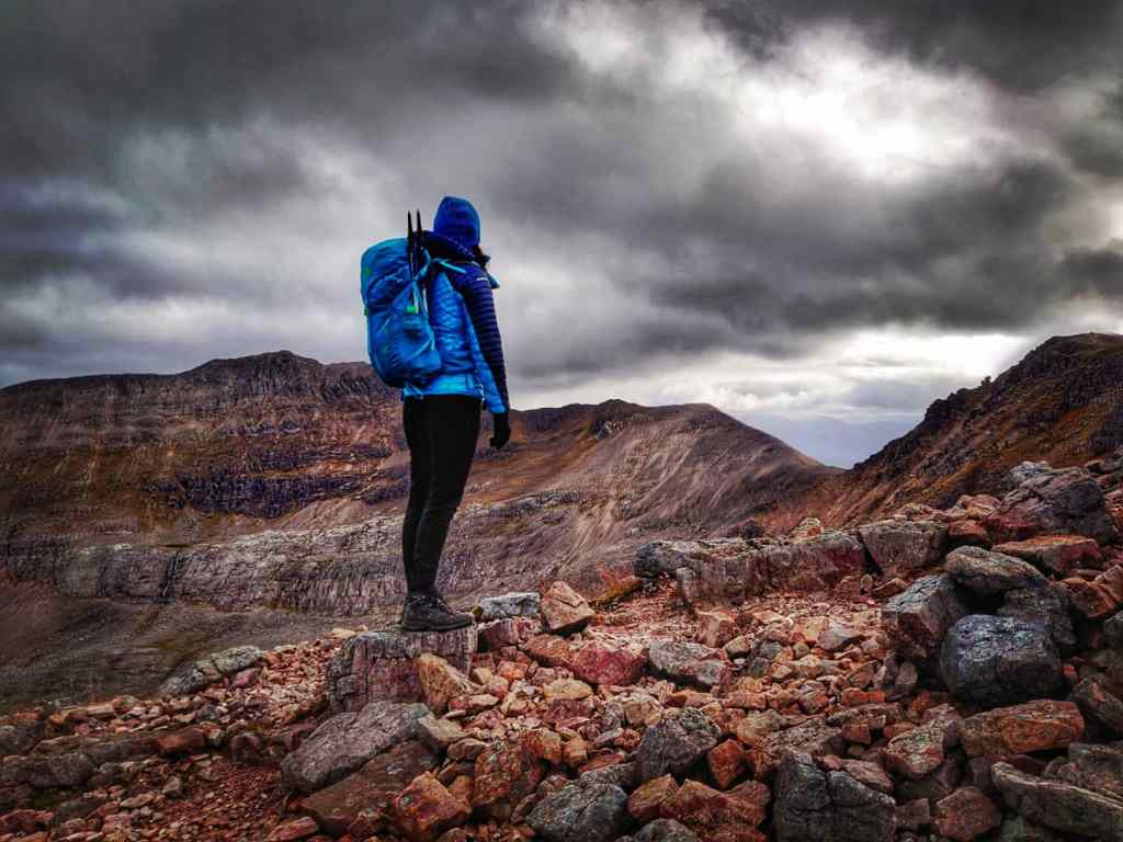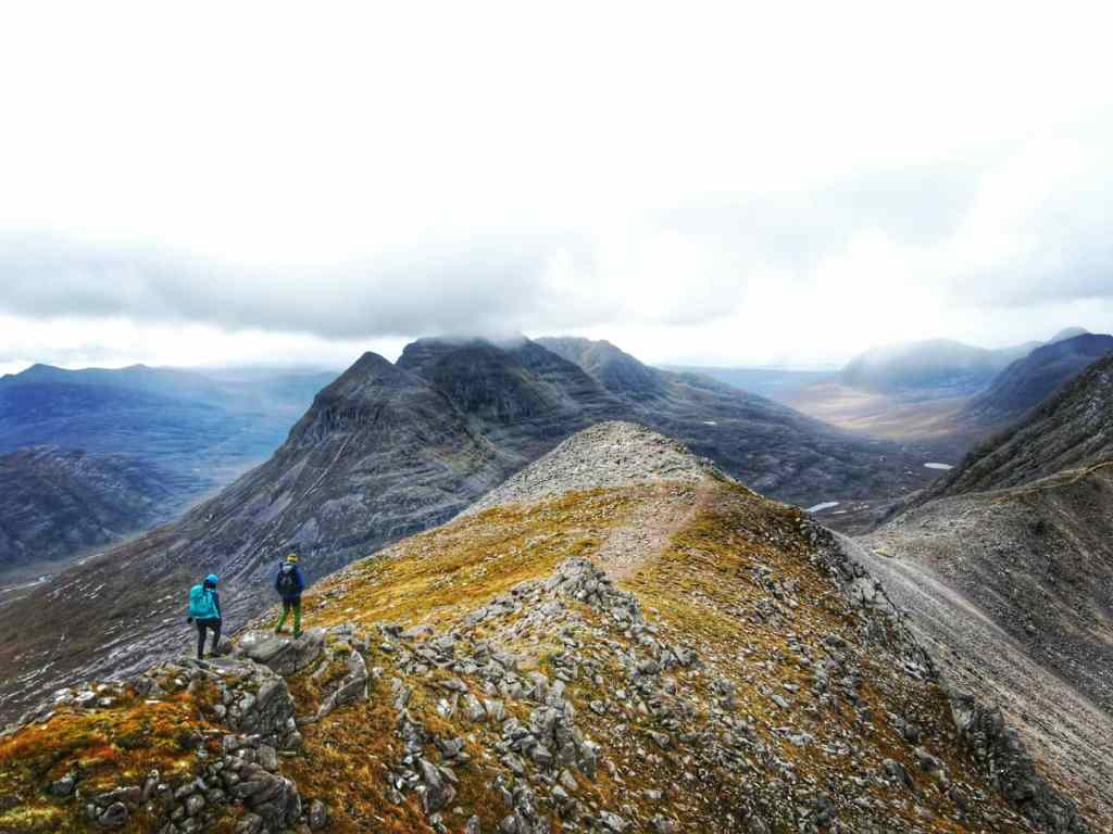 We passed by the opening of where we would descend down the mountain after we had sumitted our second Munro of the day and let me tell you it looked rather sketchy. All I could see was a very steep, very dangerous straight down loose sand stone/scree descent through a very narrow gap. This would be our descent into Coire Mhic Fhearchair.