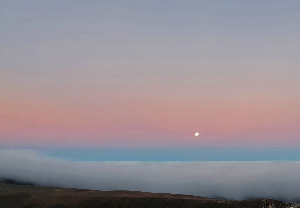 We had parked up at the ski centre the night before and we were woken with the most amazing views in the morning. Low clouds were forming in the valley and the most beautiful moon sat in the pinkest of skies…it looked very picturesque indeed and felt very calming. We just knew something spectacular was building.