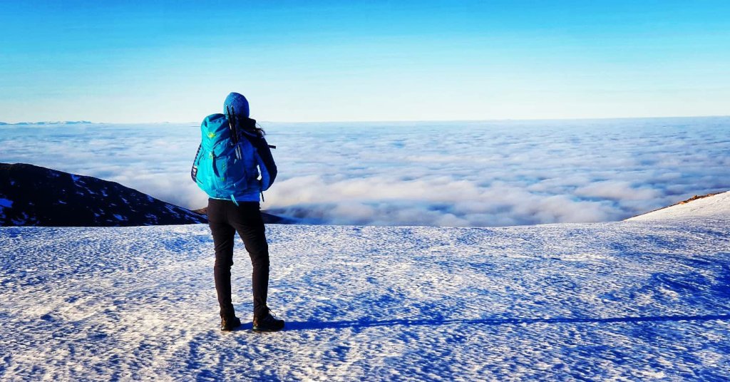 Its not often we climb mountains to be met with better conditions at the top of the climb than down at the bottom. The explanation today was because we were witnessing a massive cloud inversion as far as the eye could see.
