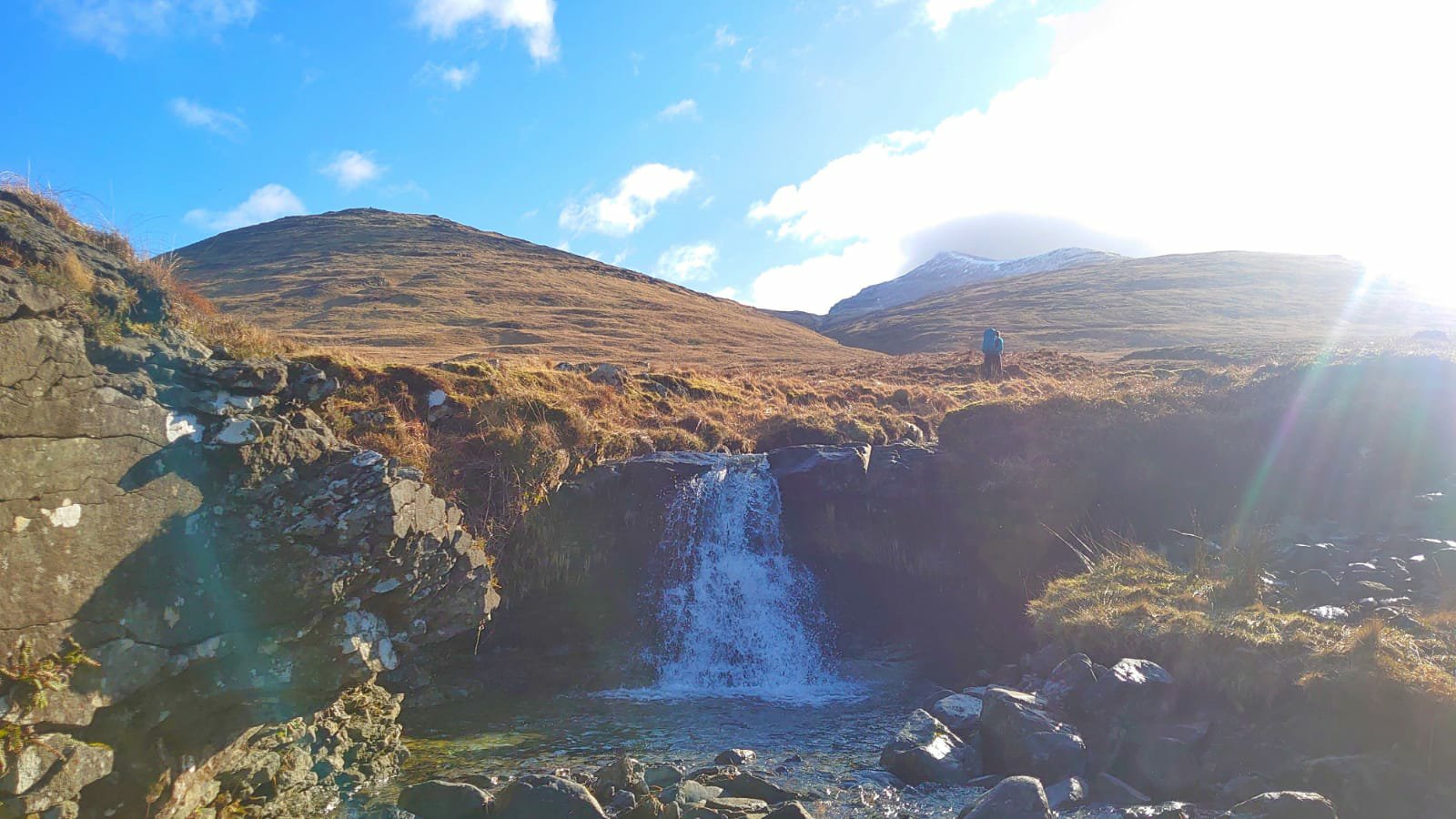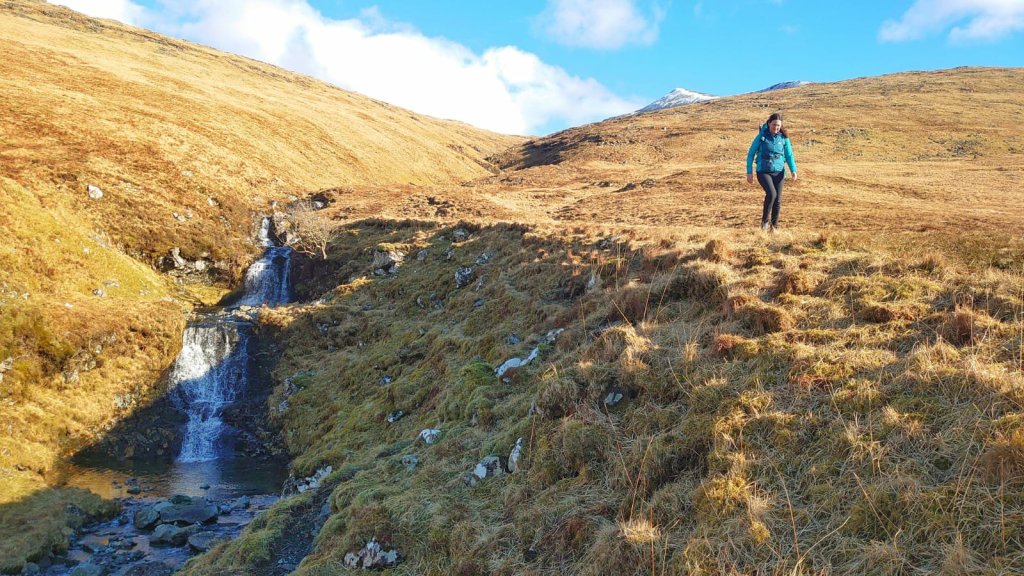We parked up just across the road from where our journey begun. After crossing the road we began our steady climb upwards following a river. The climb basically continued all the way up taking us past some beautiful waterfalls. We continued to look backwards as views across the sea just got better and better the further up we went.