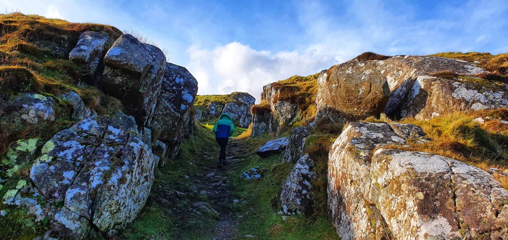 We walked up to the summit and looked at the old walls and terraces. We also saw mysterious carvings, footprints and inscriptions.
