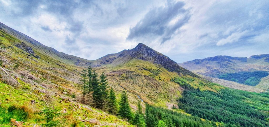Eventually we had to move on as we could see rain clouds coming in quick. The weather forcast predicted a possibility of a few small scattered showers so we wanted to try hit the summit beforehand. We gradually headed down the bealach before climbing upwards again. Our climb started of on a grassy section before it became rocky. The final ascent was over what looked like an intimidating cone but it really only involved a simple scramble to the summit of Sgorr Dhònuill.