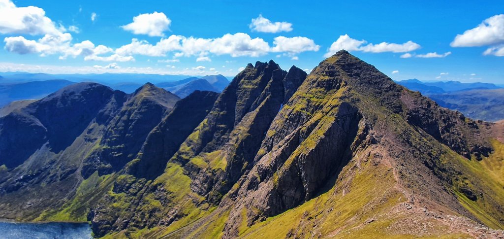 After undertaking the two Munro’s of Bidean aโGhlas Thuill and Sgรนrr Fiona we could either turn around and head back down the way we had came or we could undertake this amazing high level ridge traverse.