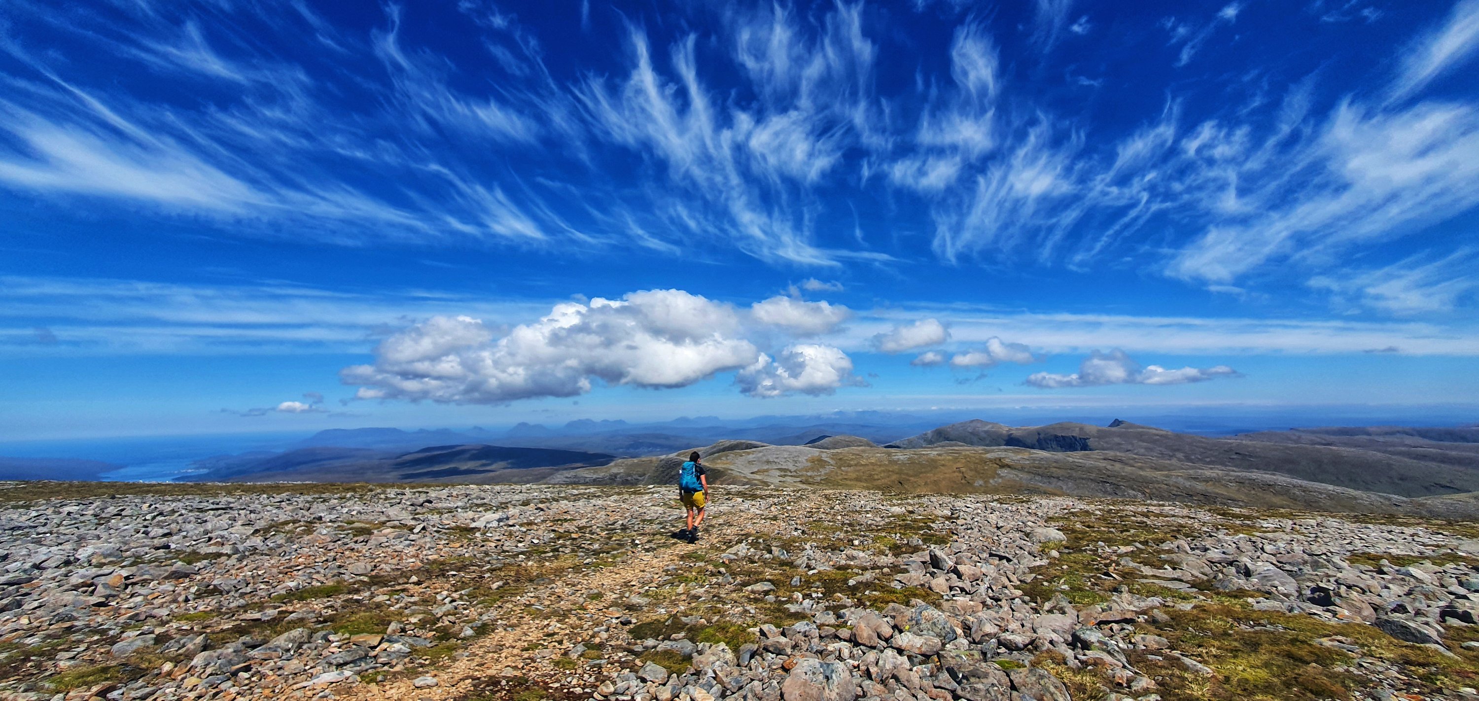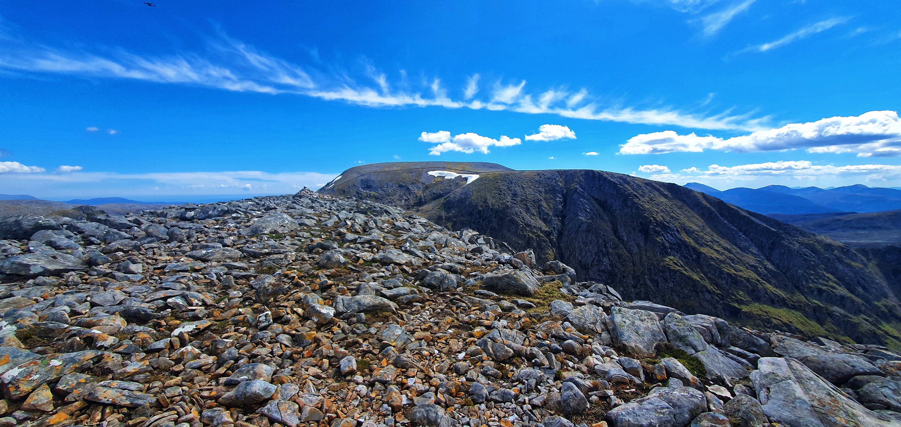I didnt want to move as this view would never be beaten but we still had a long way to go so we continued to move forward, eyes wide open, towards our 2nd Munro, Sgรนrr Fiona, on this amazing sunshiny day, although up here the wind had picked up and temperatures had dropped.