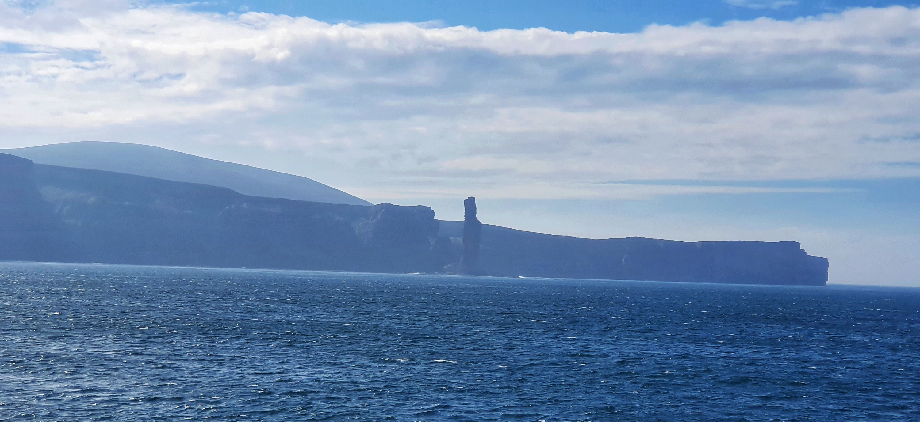 The sailing took around 1 hour 30 minutes passing by what looked like very beautiful small Islands. On nearing ‘mainland’ Orkney we passed by The Island of Hoy, with The Old Man of Hoy proudly standing guard.