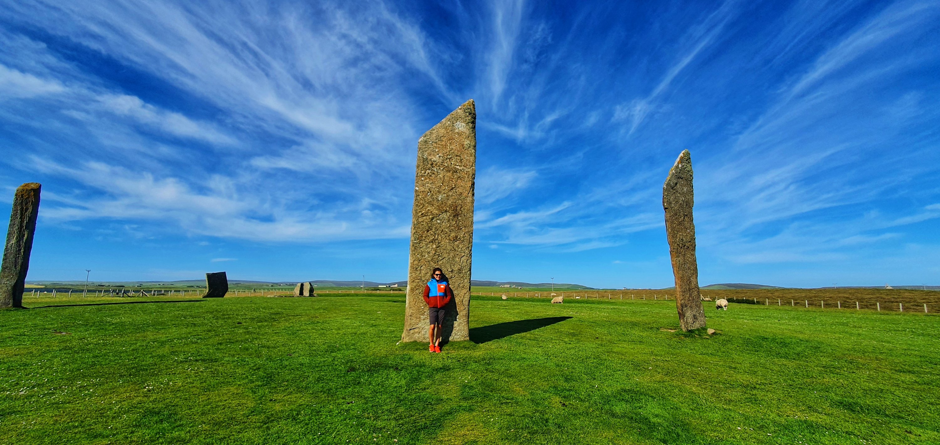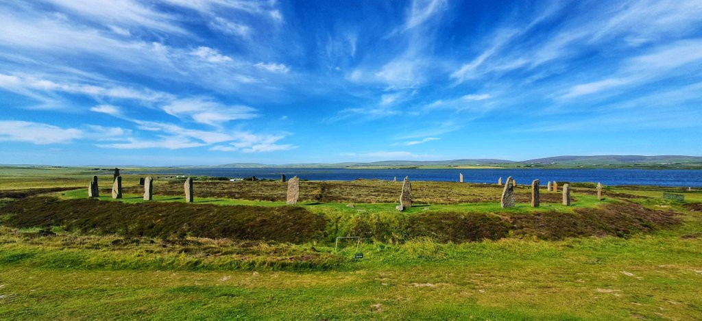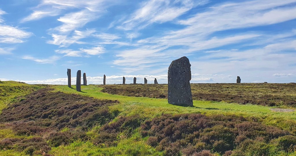 From here we went to see some more stones, the Stones of Stenness, raised around 5,000 years ago, but today consist of only four upright stones up to 6m in height in a circle that originally held 12 stones.