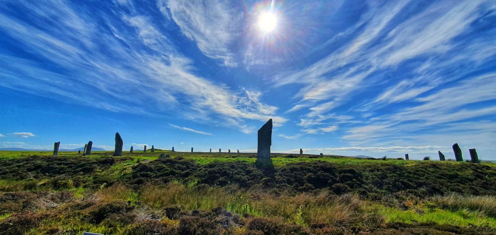 According to folklore, which I love, a band of fearsome giants gathered in a field between the lochs of Stenness and Harray one night and began to dance to the sound of the fiddle. They forgot to watch for the sun rising and as the first rays crept over the horizon they instantly turned to stone. Today they are frozen in place as The Ring Of Brodgar.