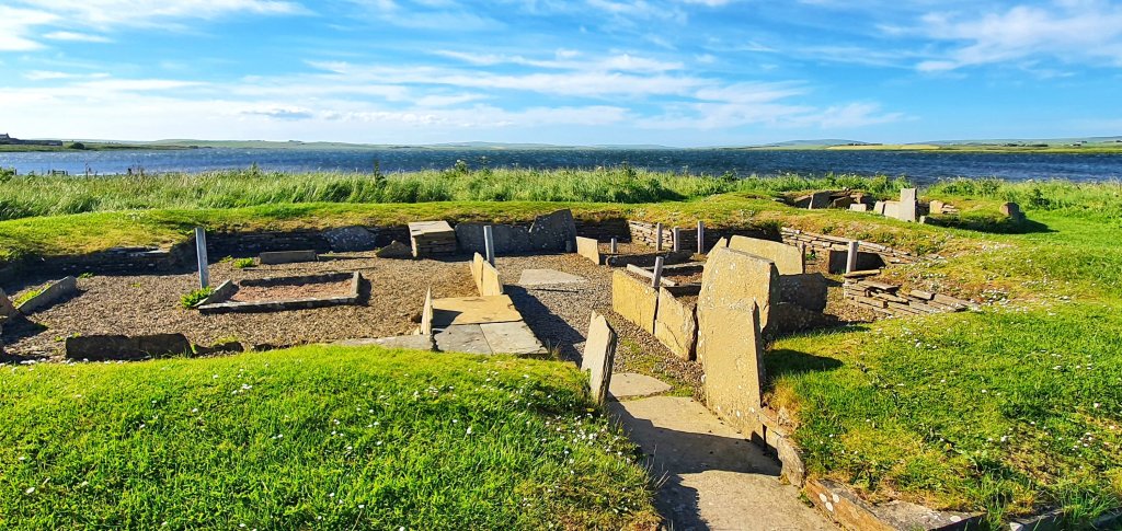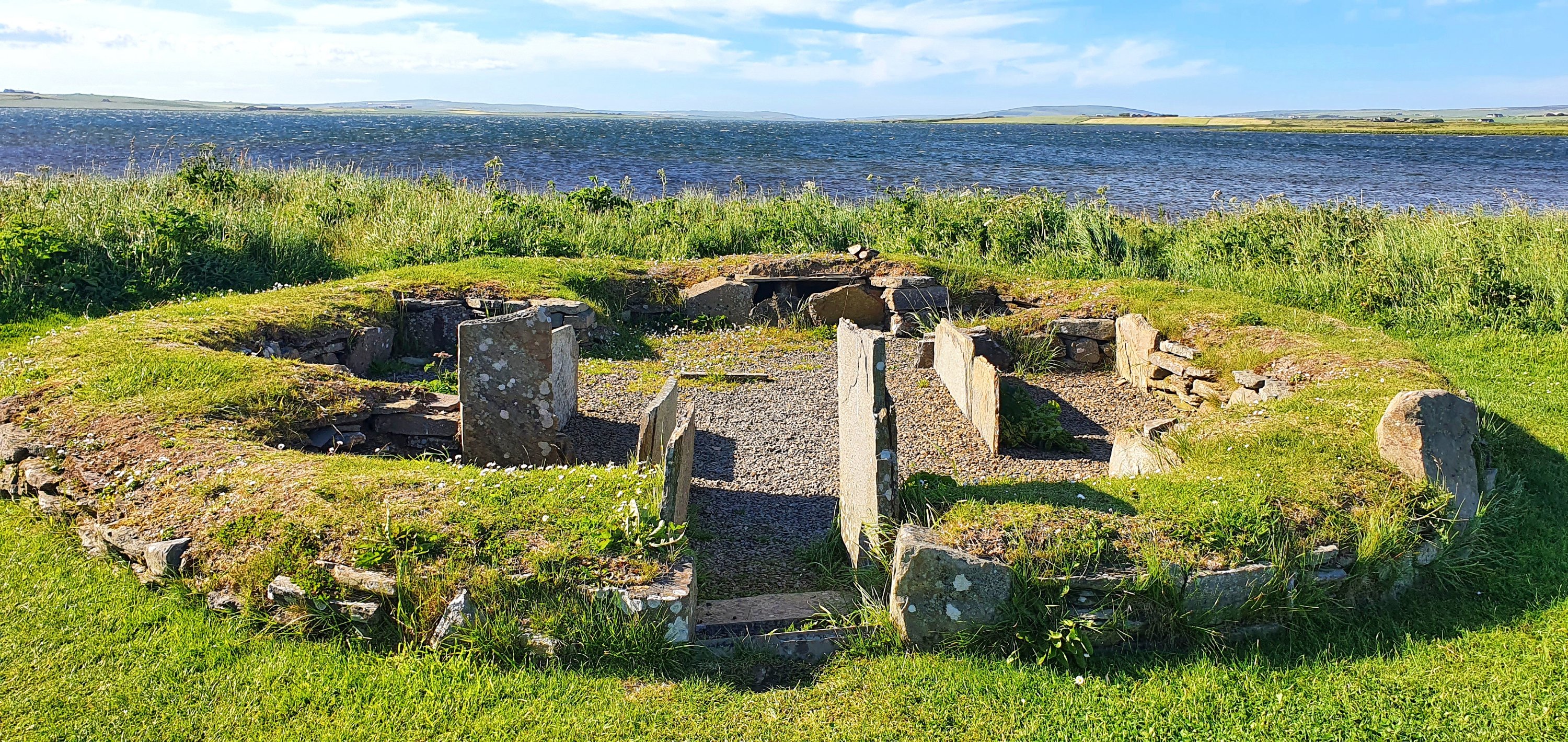 Originally this landscape was thought to have been dedicated to ceremony and ritual until 1984 when archeologists made a surprising discovery relatively close to the Stones of Stenness. Excavations uncovered a cluster of buildings, dating to about 5,000 years ago, including houses similar to Skara Brae – Barnhouse Village. This suggests that the monuments may have been part of daily life here.