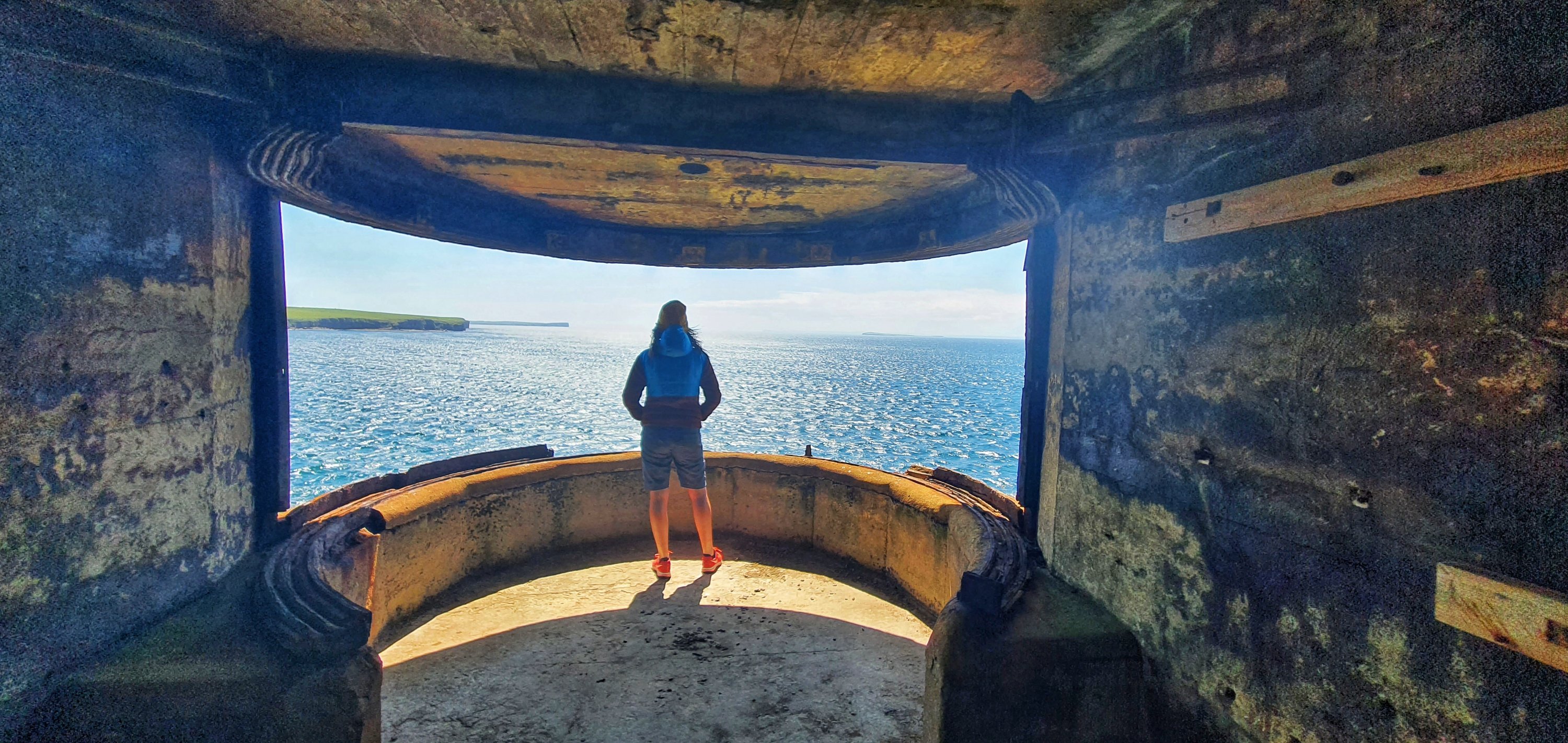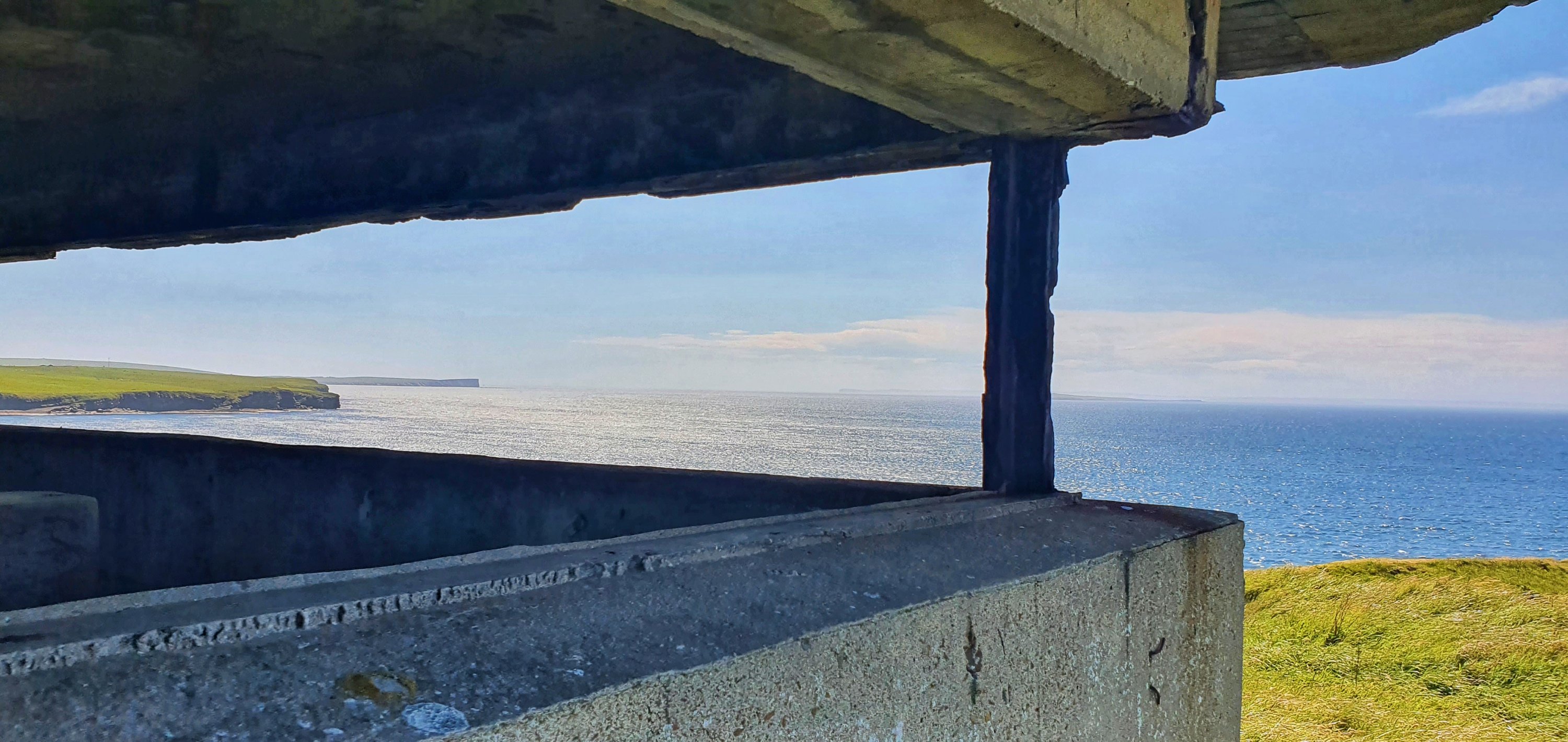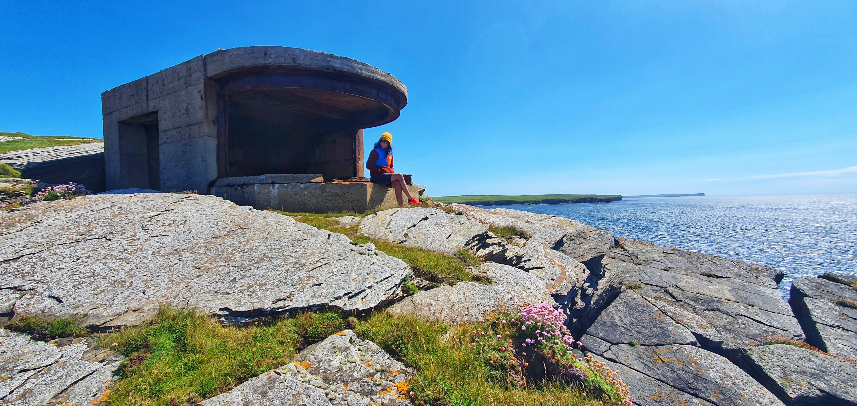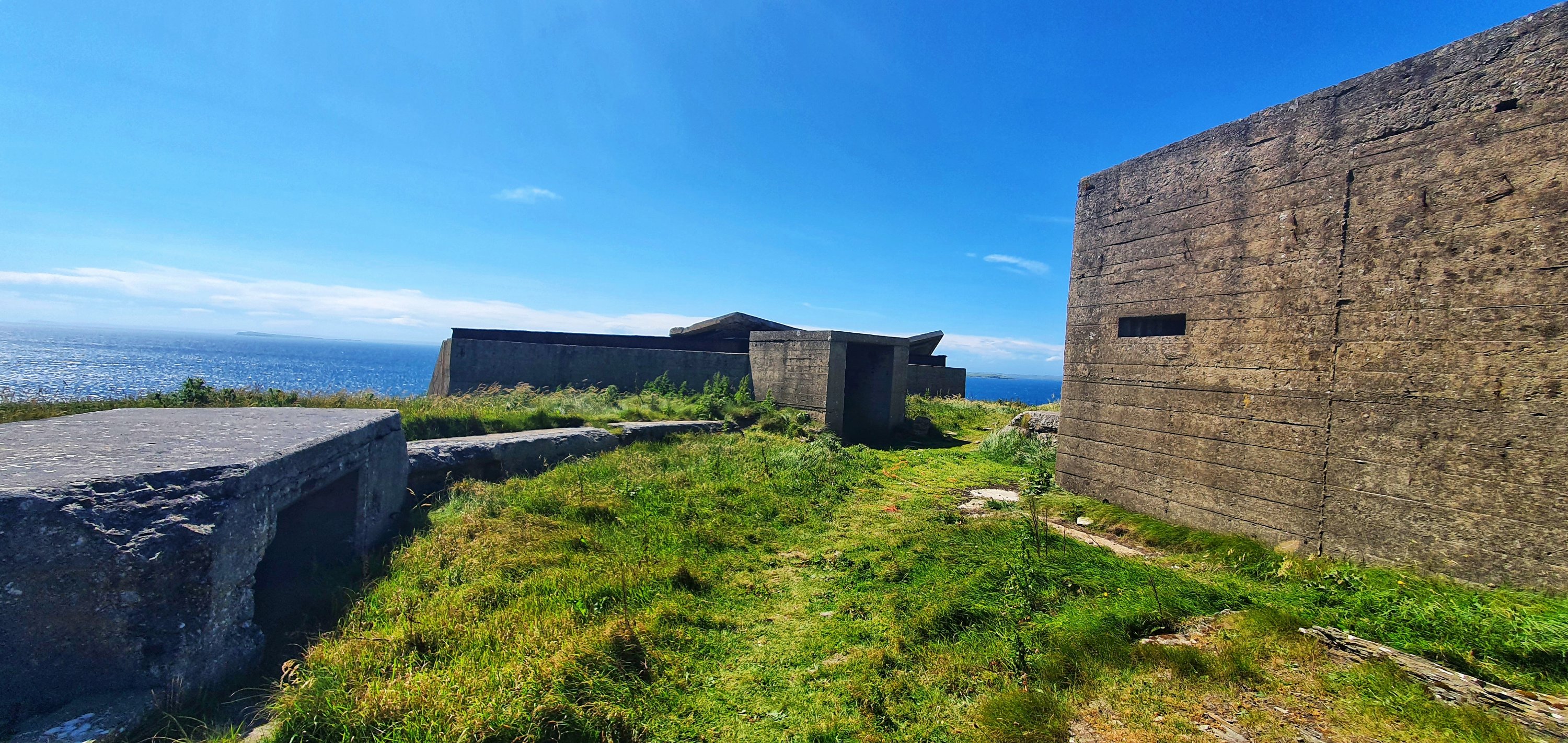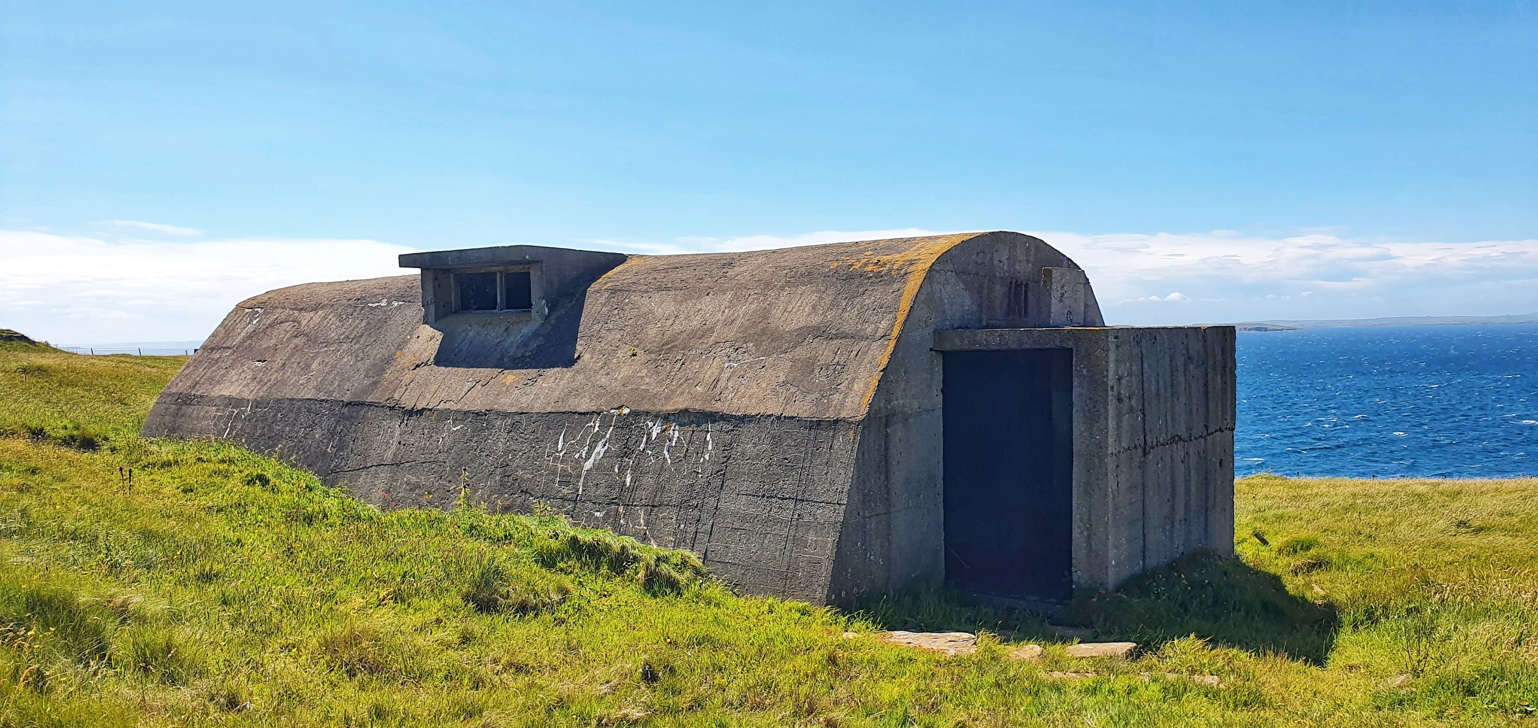 Soon we were at Hoxa Head where we took a short coastal walk up to the Battery sites of Hoxa and Balfour. Hoxa Head exhibits some of the finest remaining coastal battery buildings in Orkney. Batteries from both the First and Second World Wars can be seen.