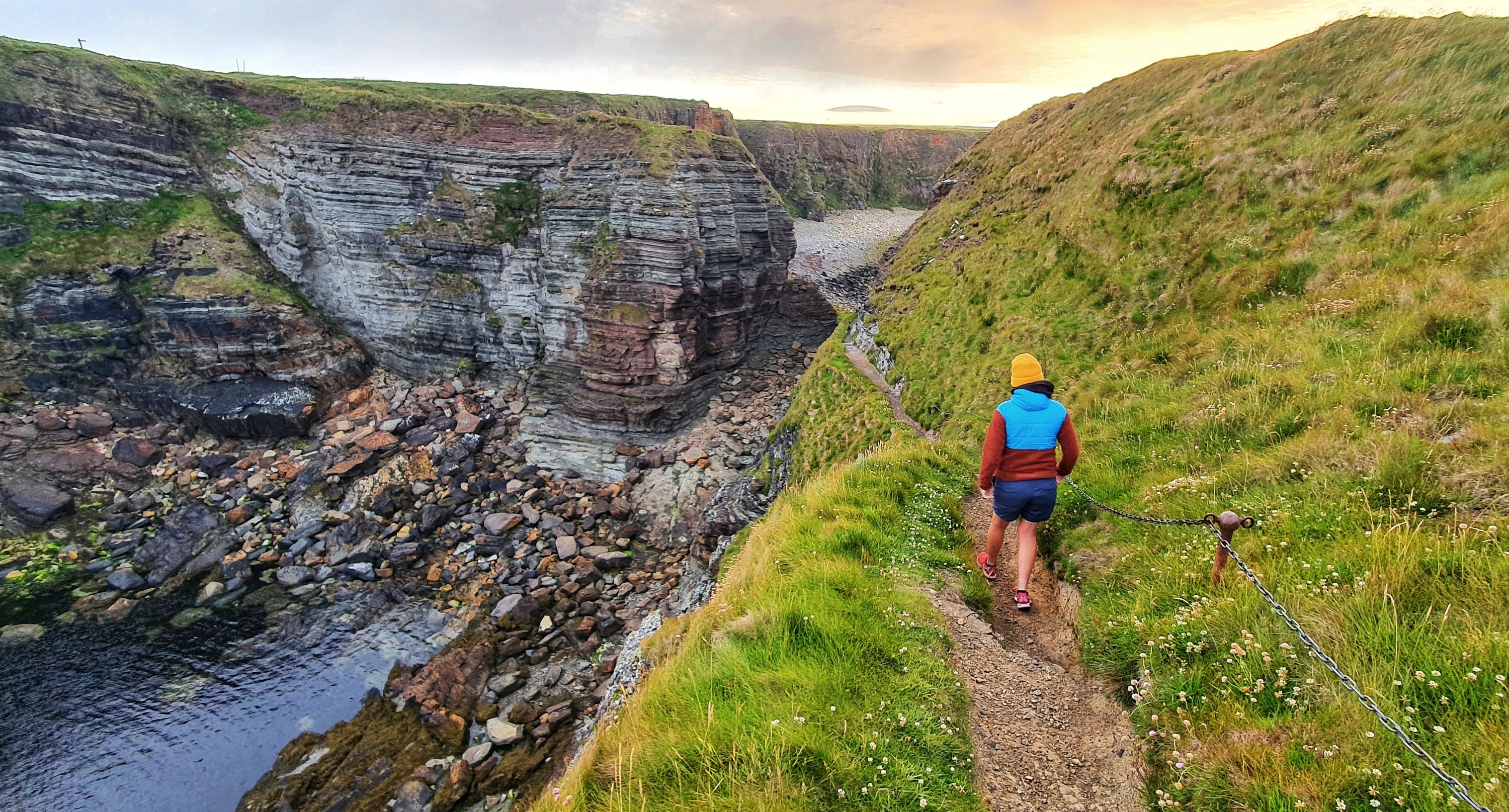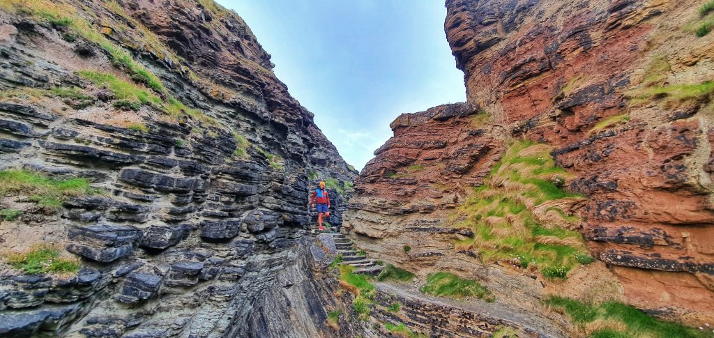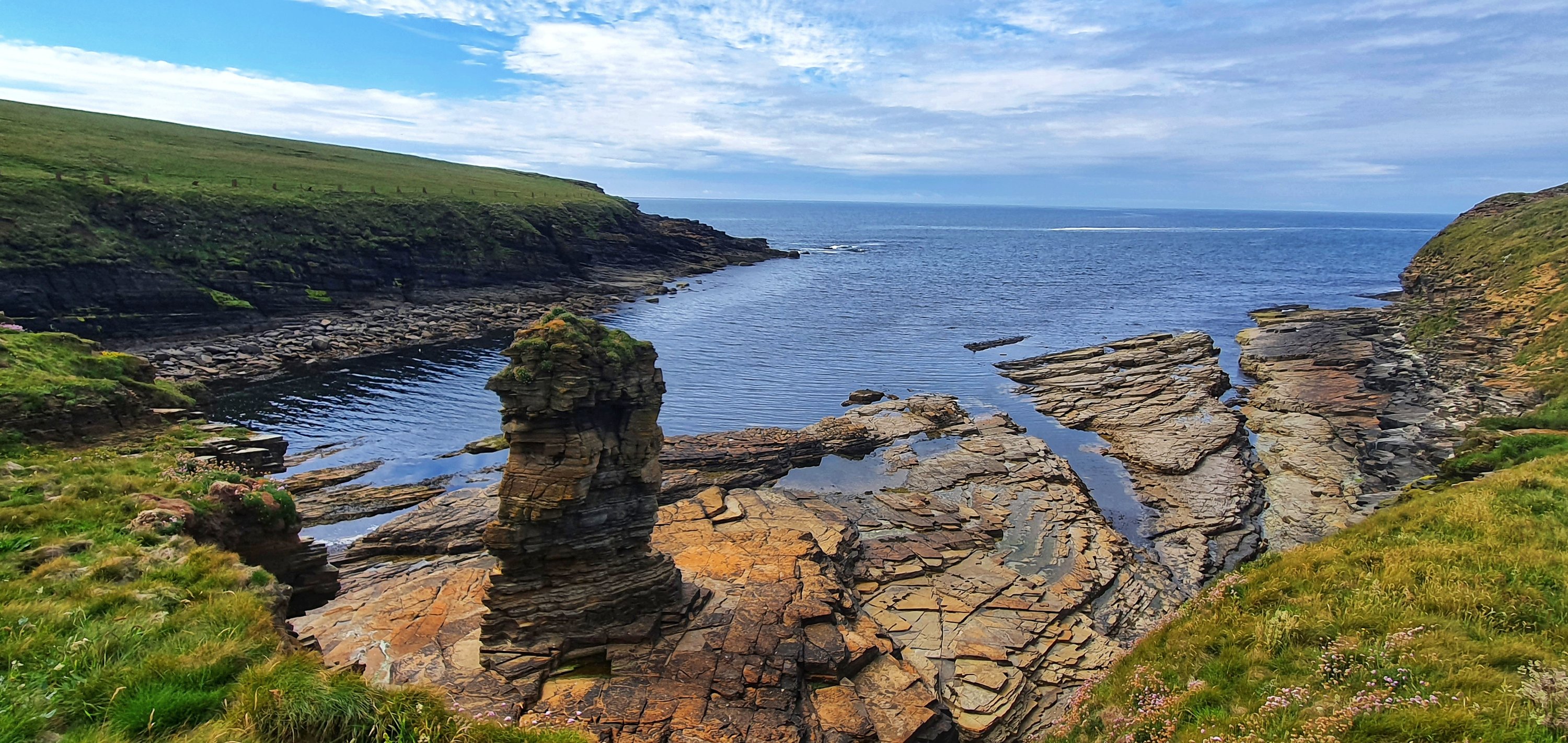We clambered down the steps to the base of the Brough and saw a beautiful rocky bay on one side and a lovely calming geo on the other.
