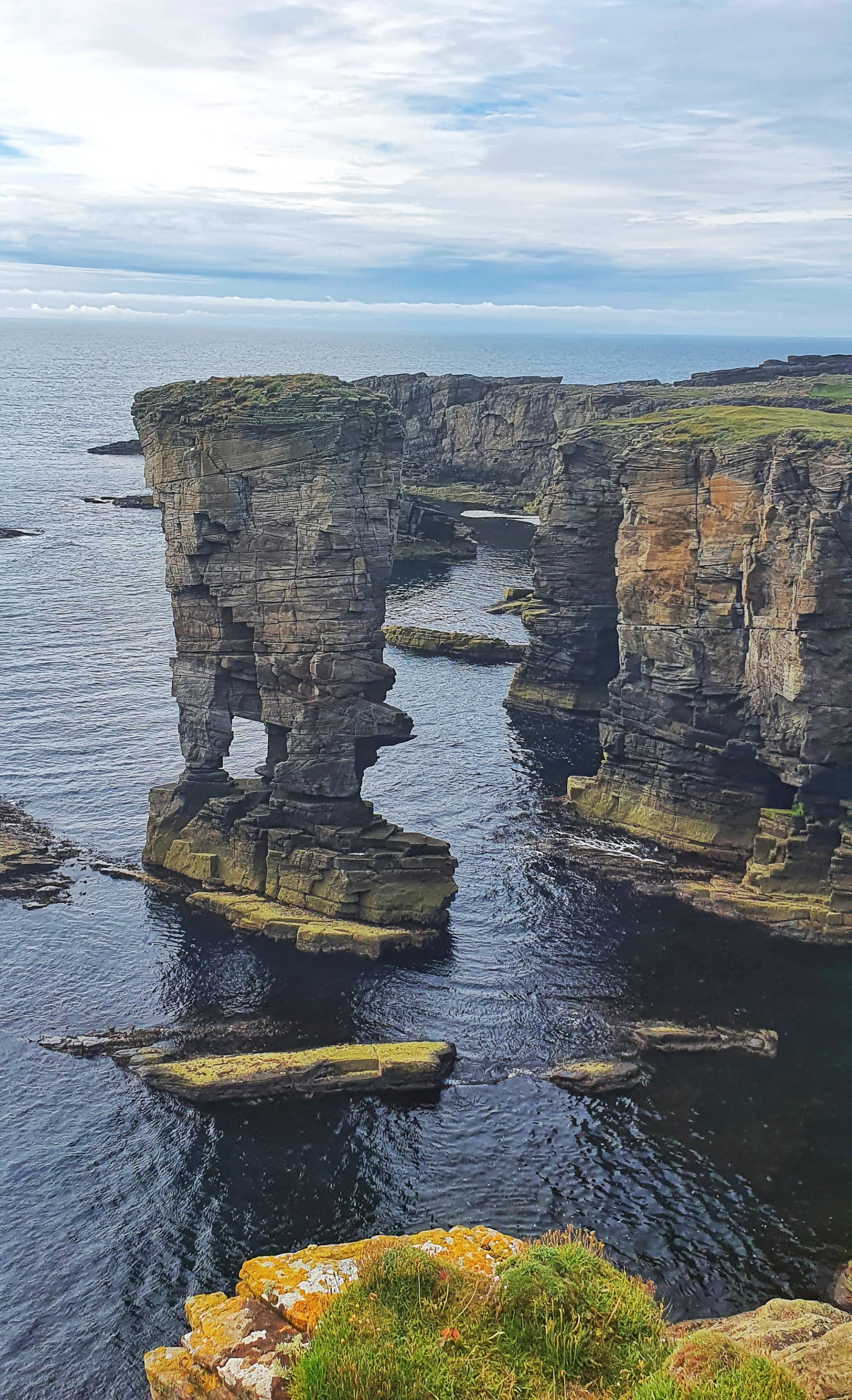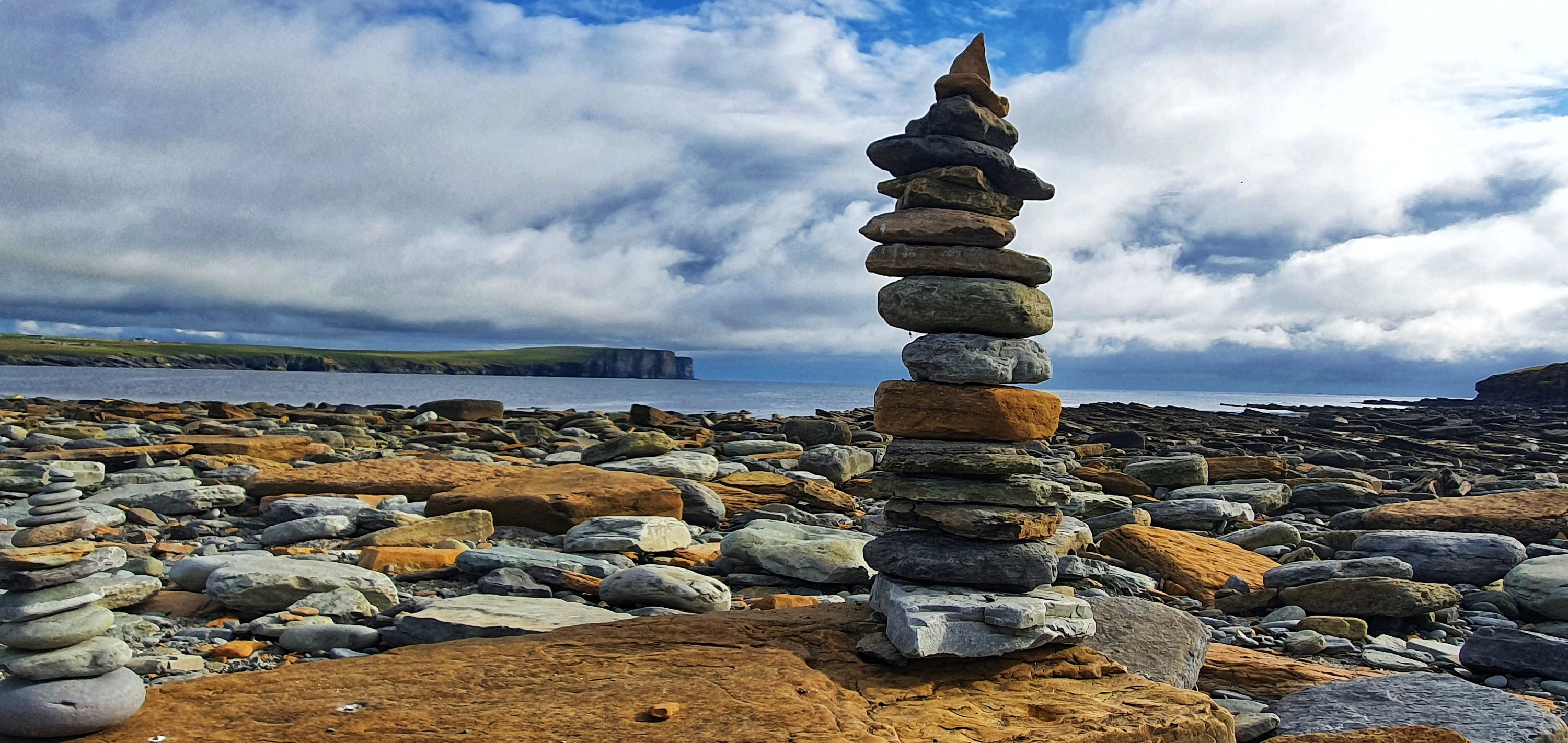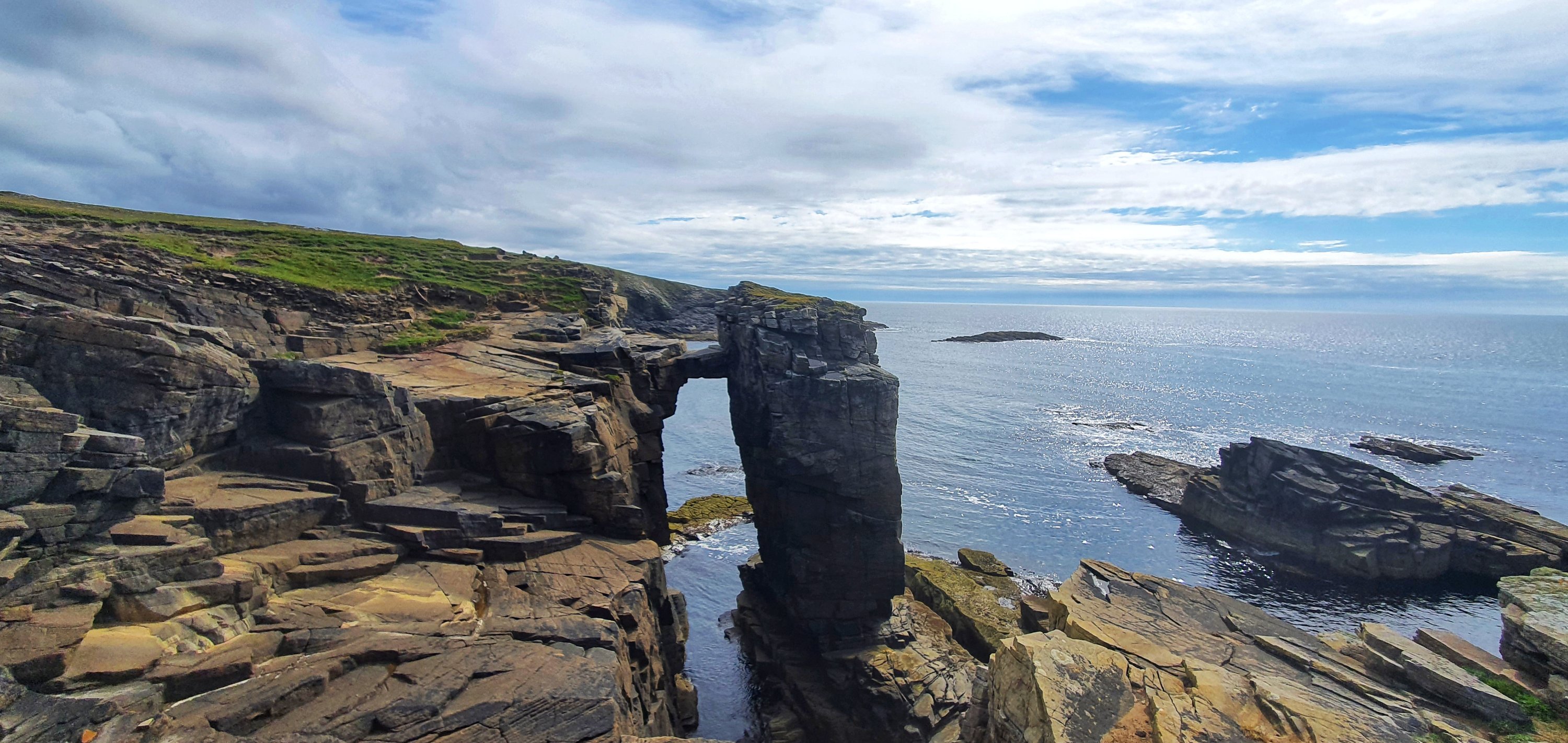 It has cliffs, stacks and arches. Yesnaby Castle a stunning sandstone sea stack sits here.