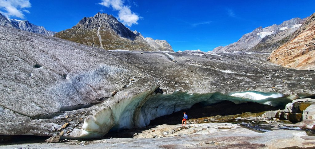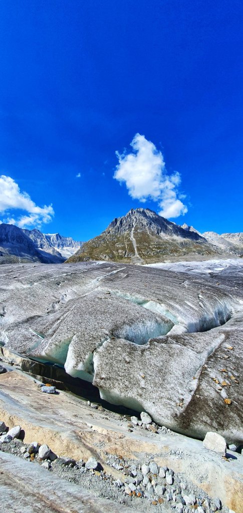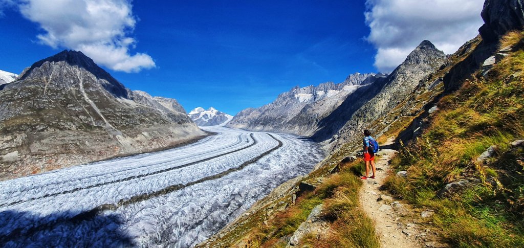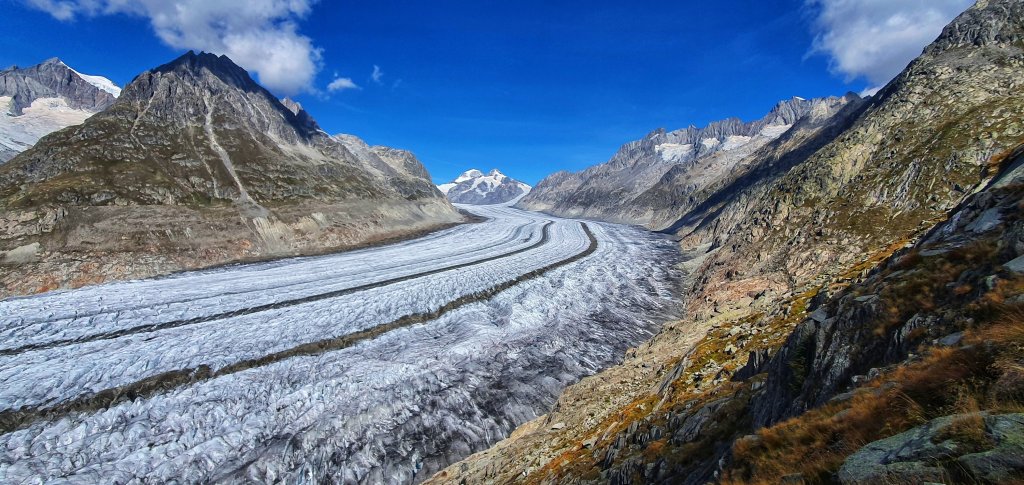 The Aletsch Glacier is the largest glacier in the Alps. It has a length of about 23 km and covers about 82 sq km in the eastern Bernese Alps, it is absolutely huge and astonishing actually.