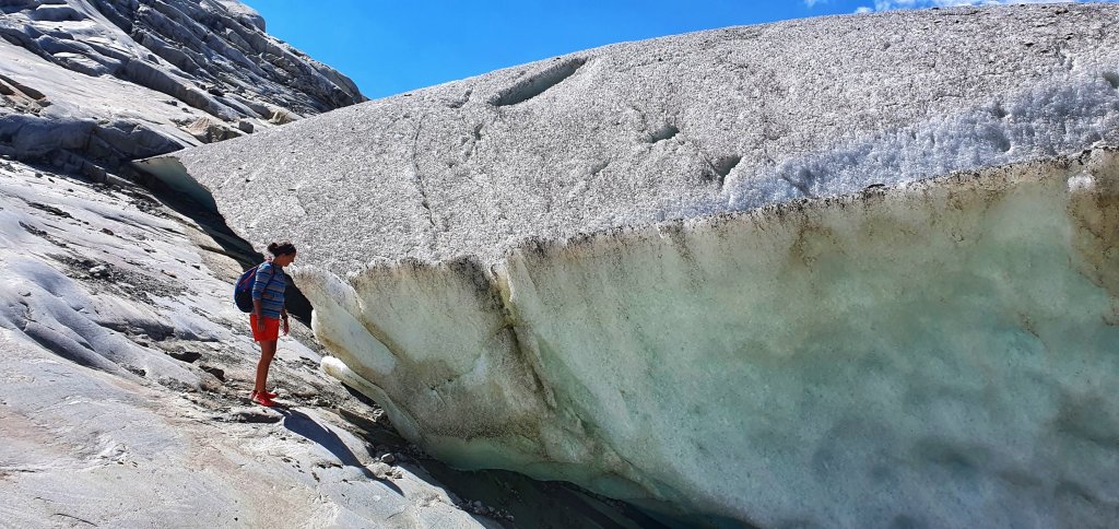 Walking away from the glacier the landscape suddenly changes and we left behind us the snowy peaks and walked towards the Marjelensee Lake with the Gletscherstube mountain hut situated beside it should you need some food and drink, we had came fully prepared.