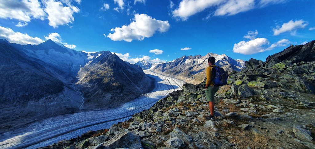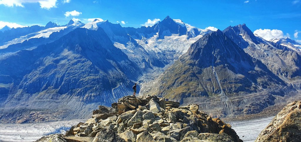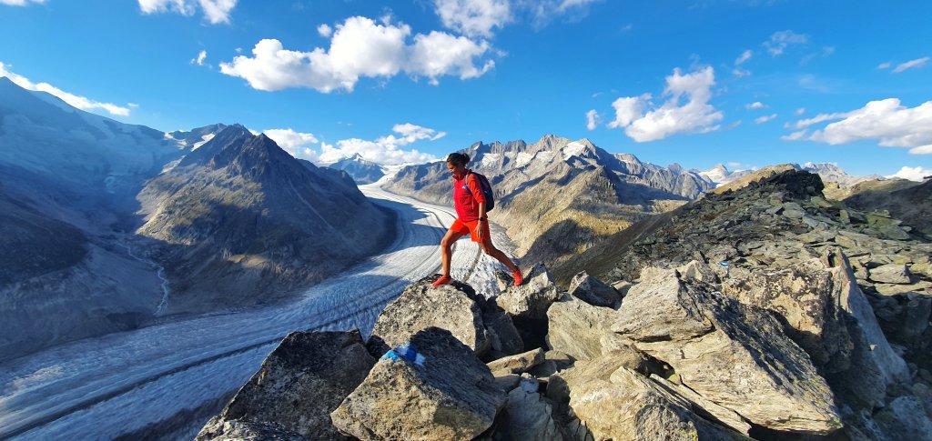 This hike was up there with the “Best-of-the-Best”, it was one of those hikes that gave us a bit of everything, it was long, it was steep, it was airy at points, it involved scrambling, it was quiet we never saw one other person on this route at all and of course all the way it provided us with plenty of stunning views of the Aletsch Glacier and all the Valais 4000m+ mountains when it was safe to look!!