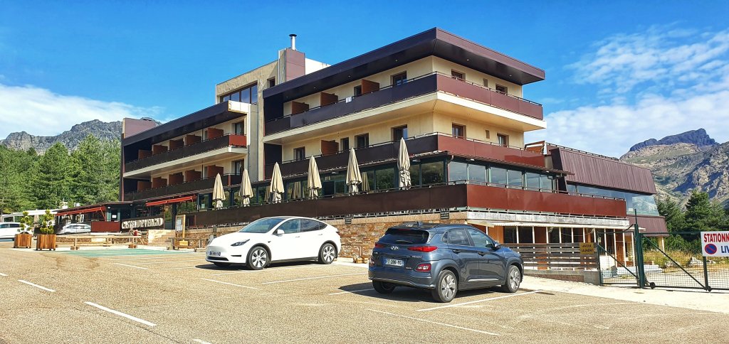 Eventually we reach our accommodation for the the night, Hôtel Castel di Vergio. On entering we book in. Here we are told by the receptionist that we need to take of our shoes and leave them in a locker provided aswell as our rucksacks. We were only allowed to bring toiletries and clothes up to our room in a bag provided by them for fear of us bringing bed bugs into their hotel. The mortification and humiliation of standing in the reception area in full view of everyone emptying our worldly goods into carrier bags as fully paying guests was just another insult to add to the shambolic nature of the GR20.