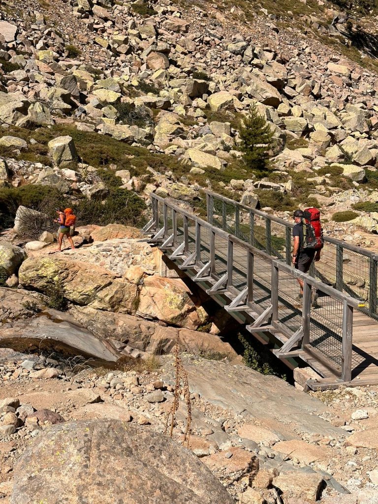 We continue on down and down and down and then cross a footbridge. We reach the Bergeries de Radule and stop for a drink a little disheartened as we cannot believe we have so much further to go.