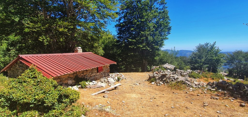We passed two well kept shepherds’ cabins, Alzeta and Scarpaceghje, before we had a last pull up through the Sambucco woods to bring us out just above the ski station. This was one steep hard last pull up!