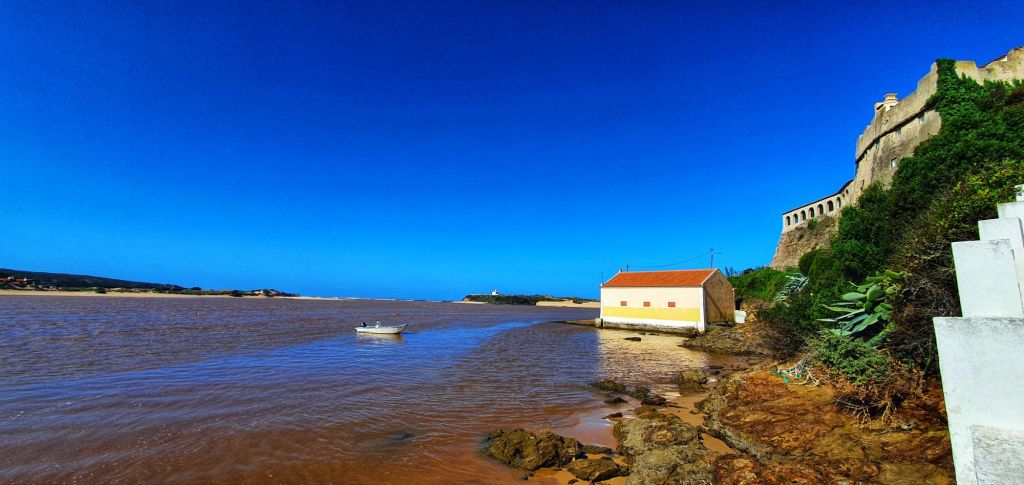 We catch the small ferry which is ready to go pretty much when there’s enough passengers and no sooner than 5 minutes later we were across the estuary. From here the views back across to Vila Nova de Milfontes are stunning.