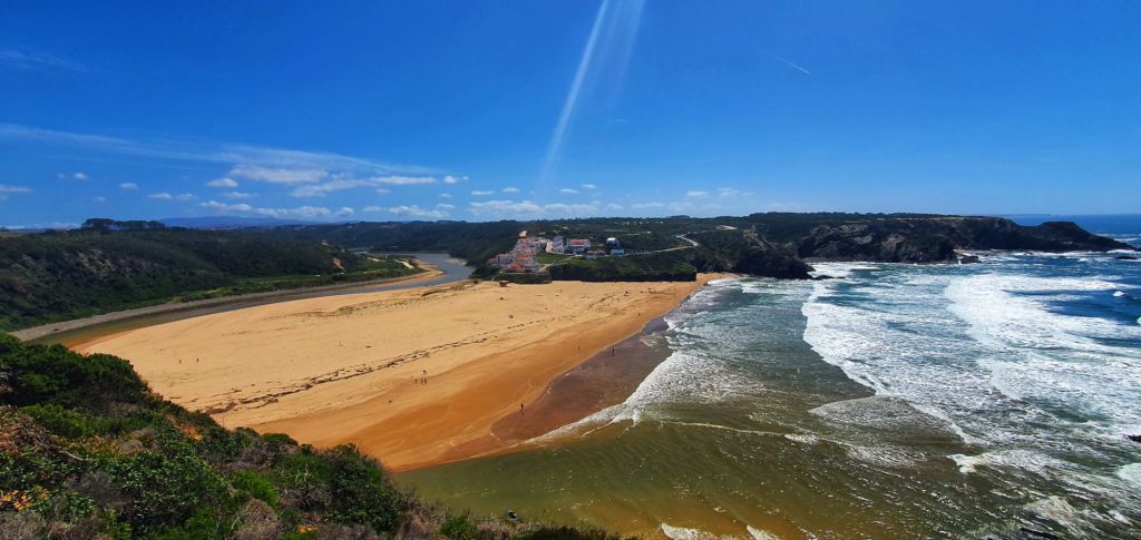 The first glimpse of Praia de Odeceixe from the north is quite something. The hillside tumbles with whitewashed properties with their terricota roofs and below the glorious beaches and ocean. Sitting slightly further back flows the meandering river Seixe.