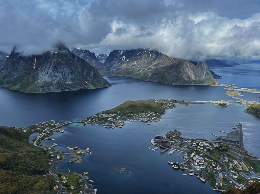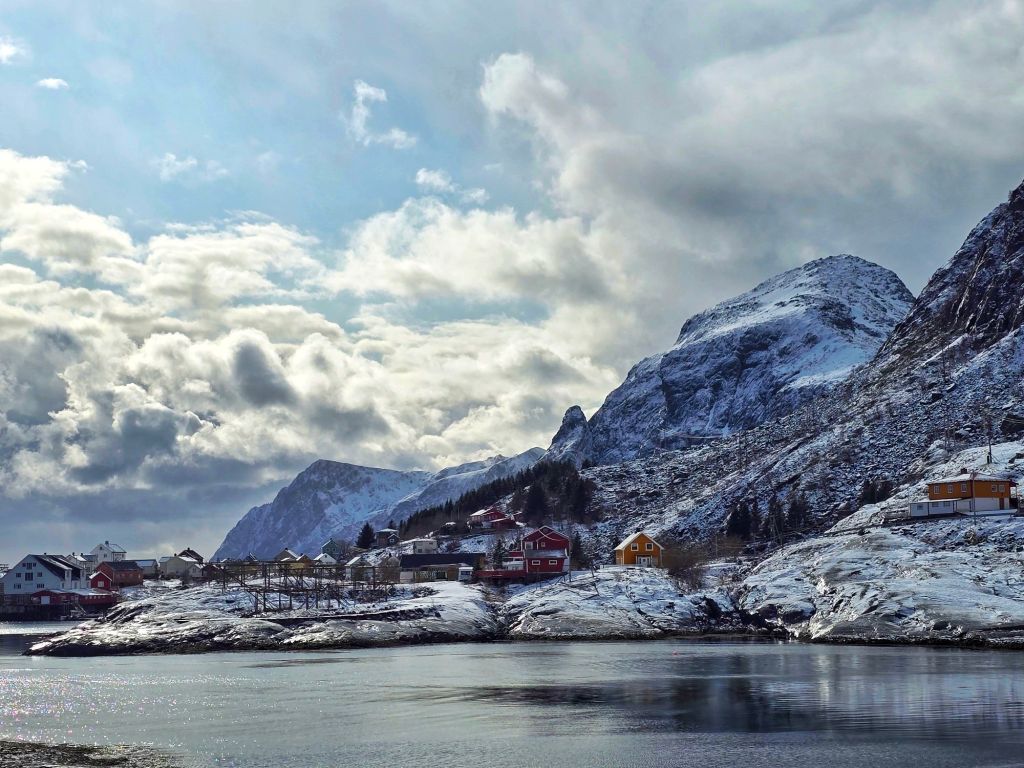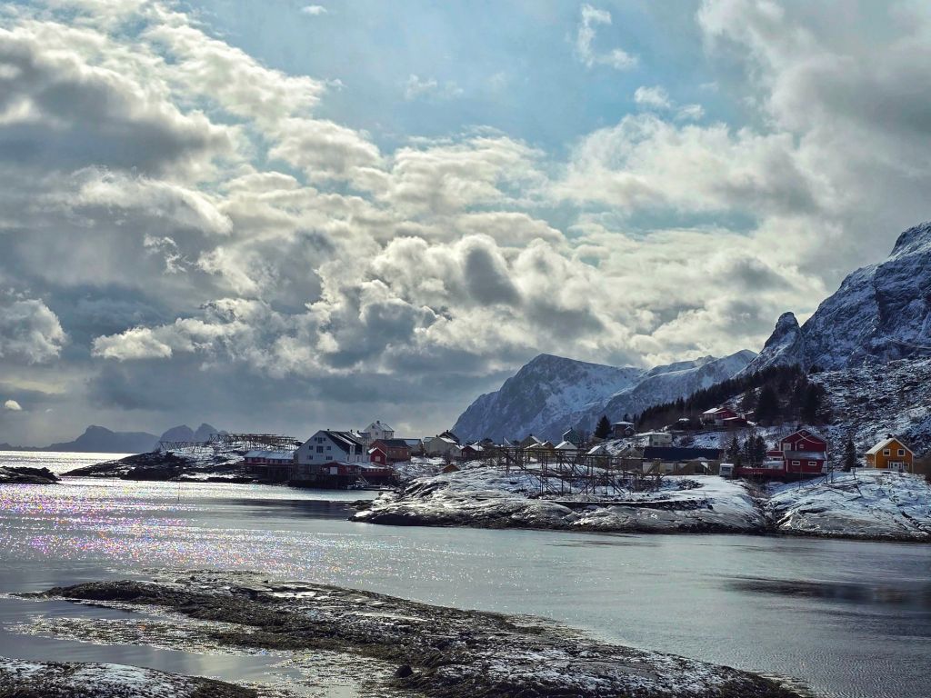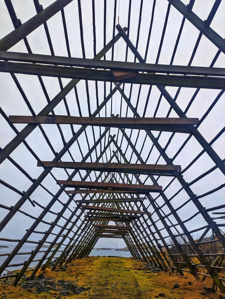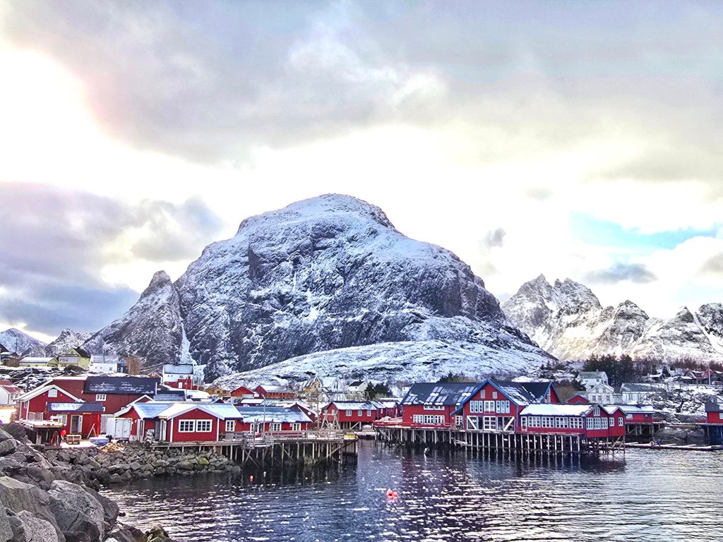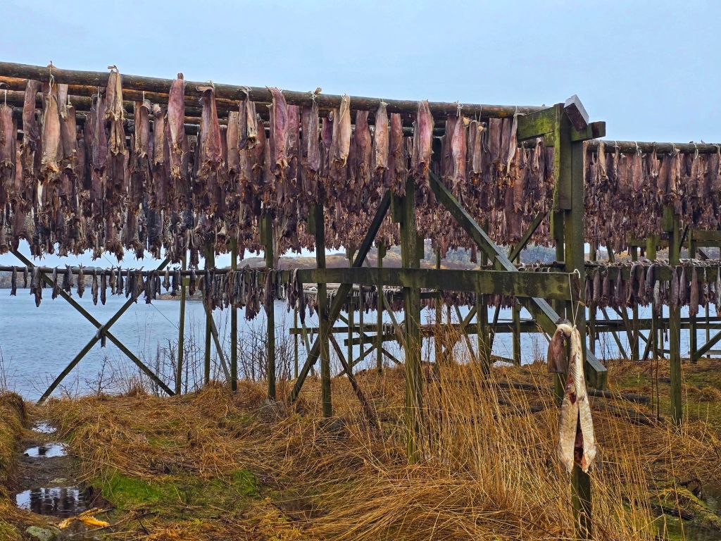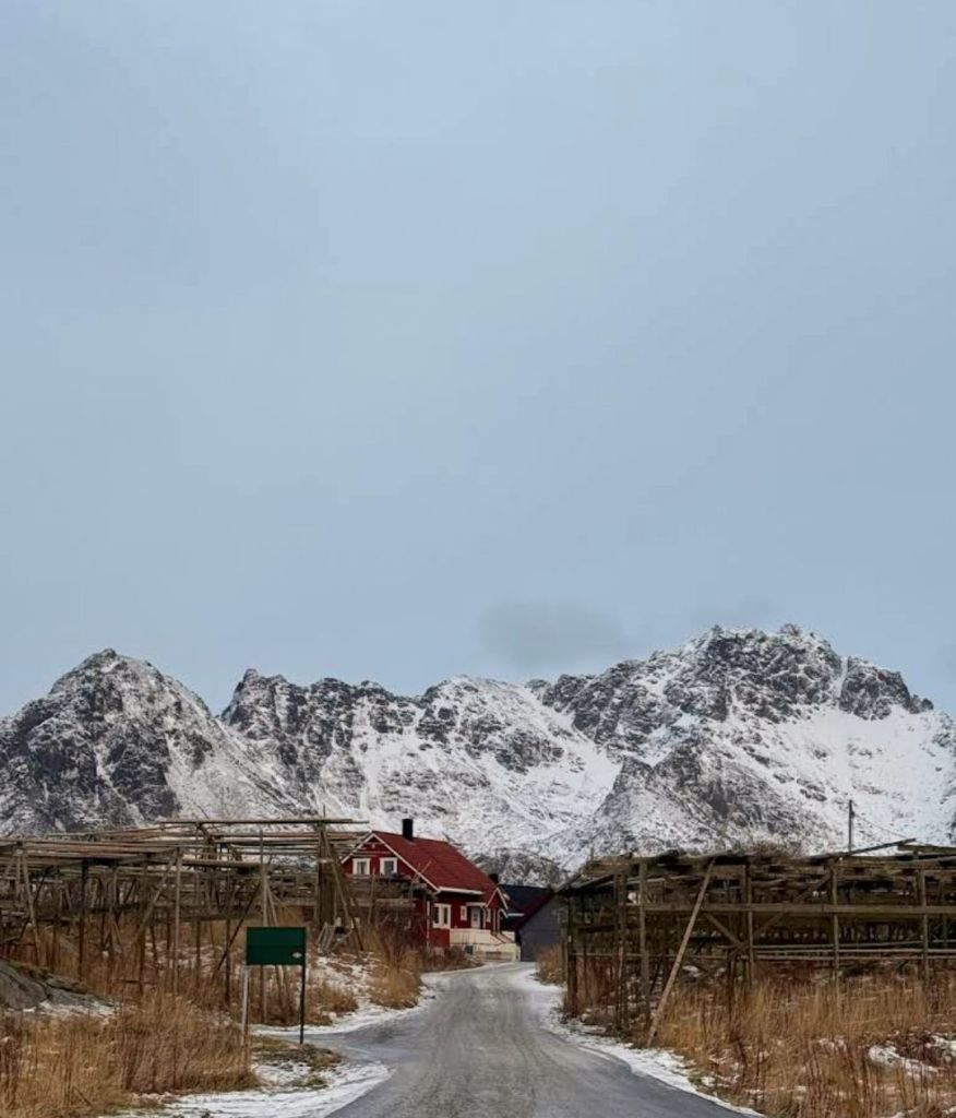 Arriving in Henningsvรฆr, one of Lofotenโ€™s most picturesque villages, we were met by the salty Arctic air and the unmistakable sight (and scent) of stockfish drying on vast wooden racks. The brightly painted houses, perched on rocky islands, seemed to defy the elements.