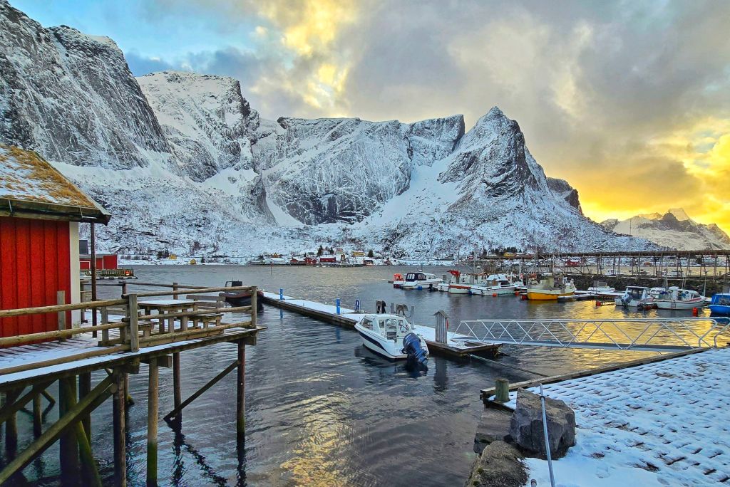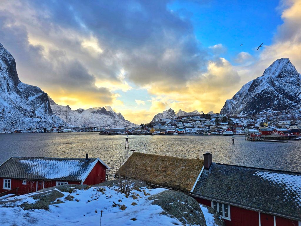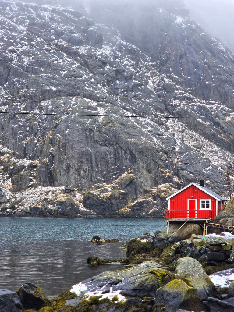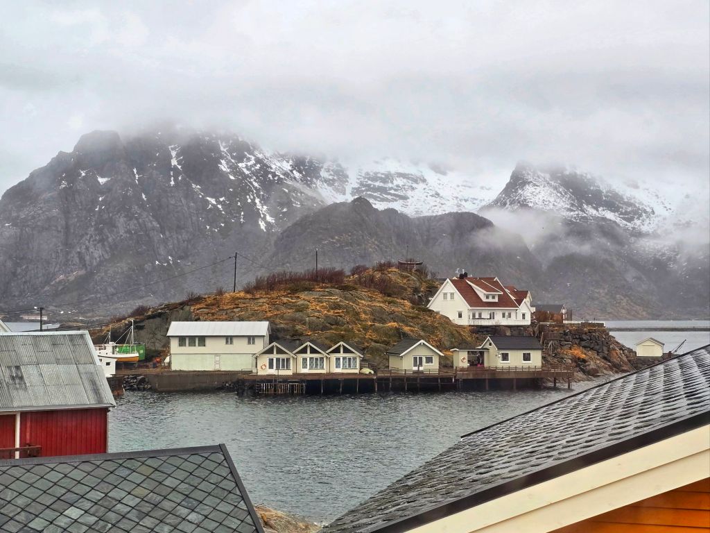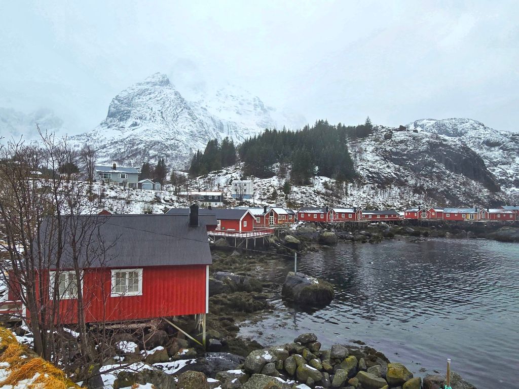 This place had been high on our list, and now we were finally here, staying in a traditional rorbuerโ€”a classic Norwegian fishing cabin, perched right on the waterโ€™s edge.