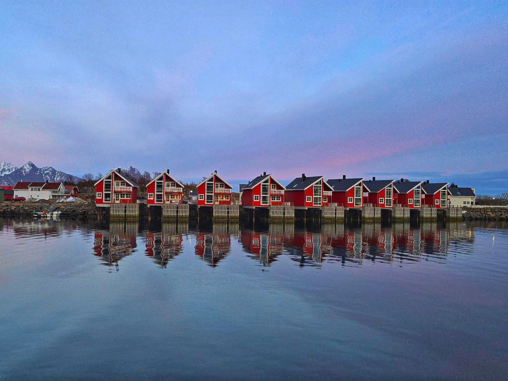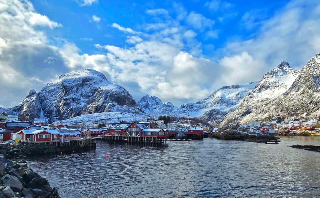 Reine greeted us with calmish waters and those picture-perfect red rorbuer reflected in the still fjord. With towering peaks all around, itโ€™s no surprise this tiny village is one of the most photographed in Norway.