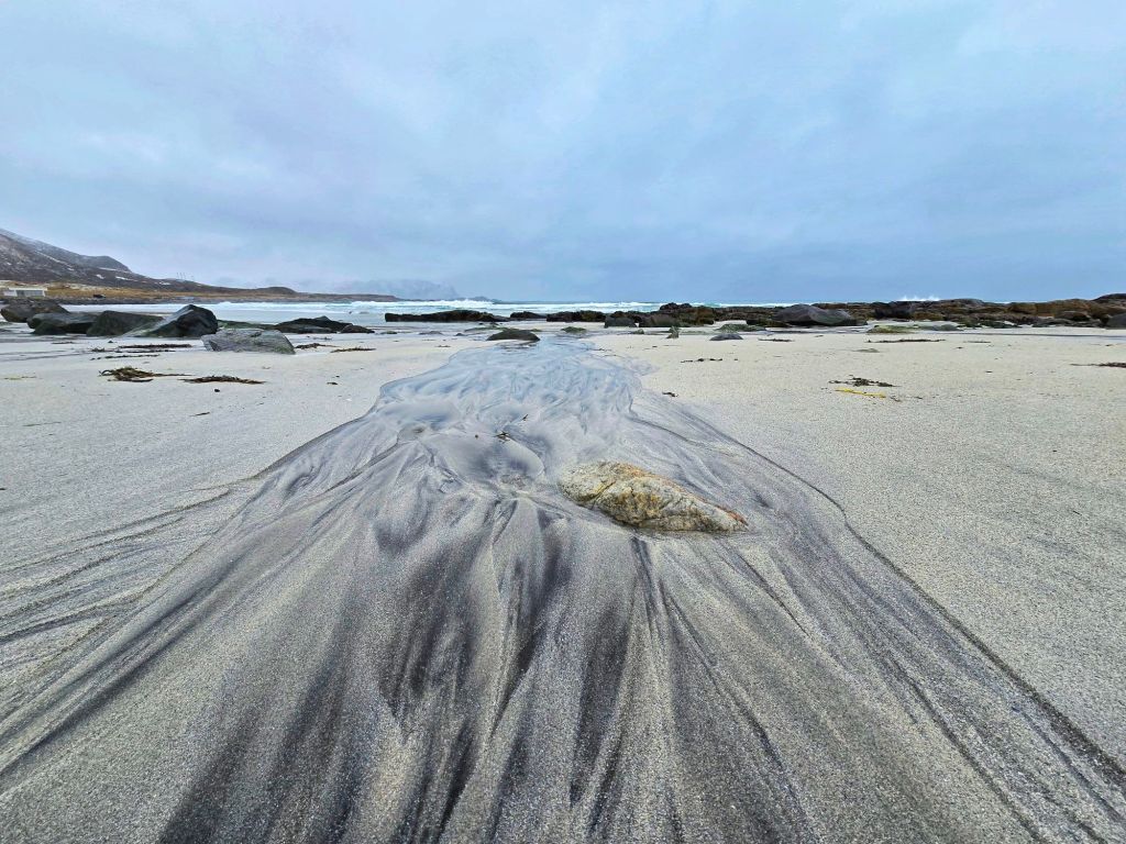 From there, we headed to Skagsanden Beach, where black and white sands meet the crashing Arctic waves. With snow-covered peaks rising in the distance and the wind swirling around us, it was wild and beautiful and totally unforgettable.