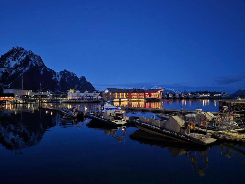 As the unofficial capital of the Lofoten Islands, Svolvรฆr has a bit of everything: cosy cafรฉs, colourful harbours, rugged peaks rising straight from the sea, and even a touch of urban energy.