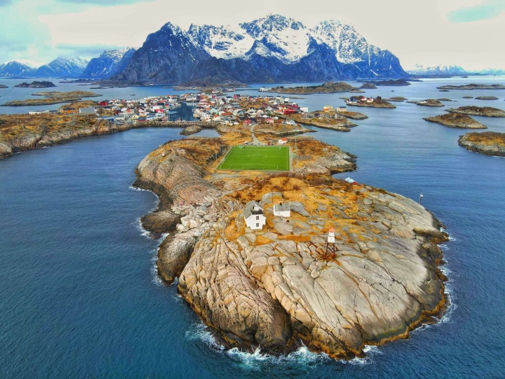 A highlight of our visit was seeing Henningsvรฆrโ€™s legendary football pitchโ€”perched on a tiny island, surrounded by nothing but the wild North Atlantic. No grandstands, no floodlights, just a perfect pitch in one of the most dramatic settings imaginable.