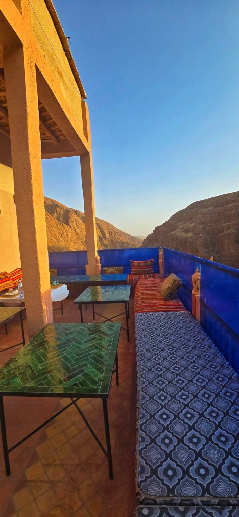 We made the winding ascent just before sunset and stayed overnight at the top of the gorge, in a charming, old-style riad owned by a local Berber. With no one else around, it felt like our own little slice of mountain magic.