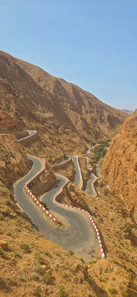 If thereโs one road that tests your nerves and your brakes, itโs the iconic switchbacks of Dades Gorge.