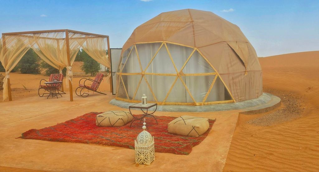 After days of winding souks, mountain treks, and dusty roads, nothing could prepare us for the sheer magic of spending a night in a stargazing dome tent in the Sahara Desert.