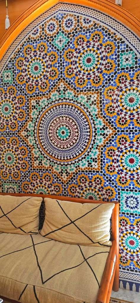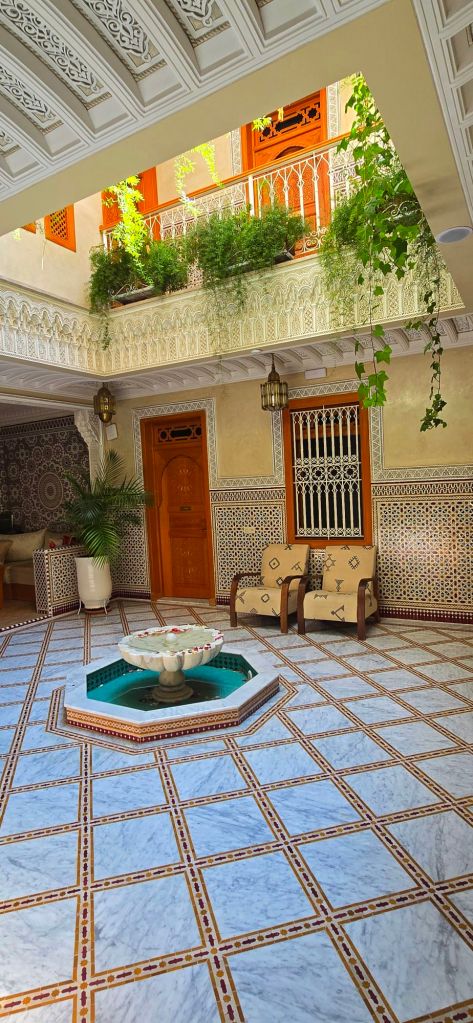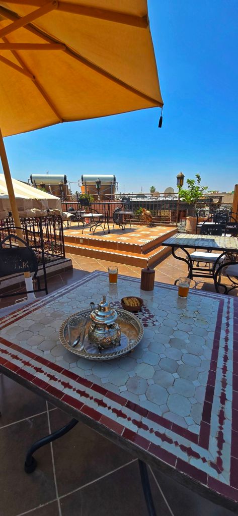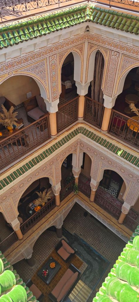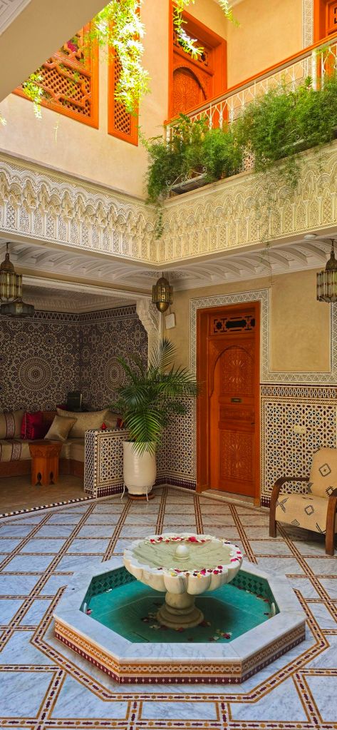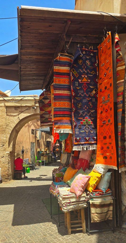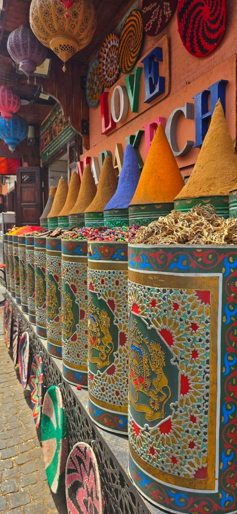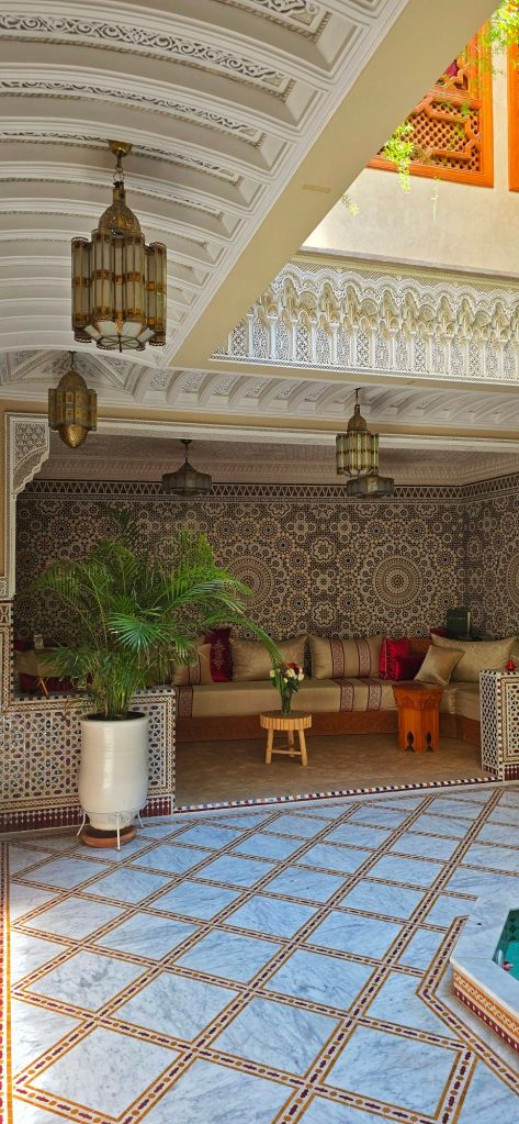 Whether itโ€™s the vibrant souks overflowing with patterned fabrics, the ornate lanterns casting golden shadows, or the serene beauty of the riads with their carved wood and colourful mosaics, Marrakech feels like a place where creativity and tradition meet in the most beautiful way.