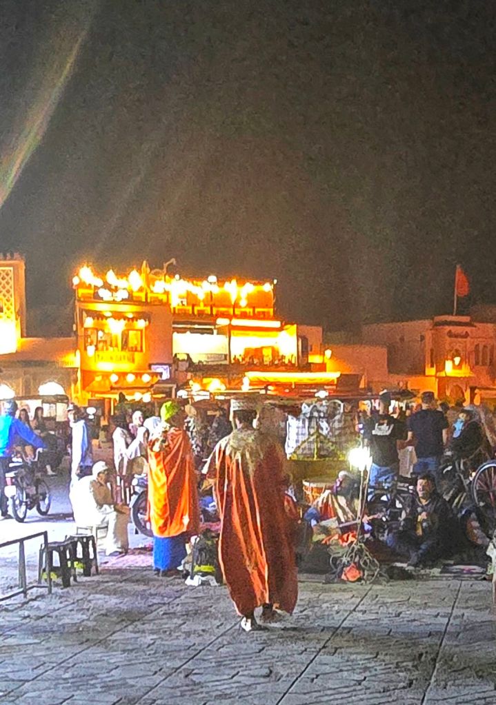 By night, the square transforms into a theatre of life with halqa performers spinning tales, musicians drawing crowds and steam rising from sizzling tagines.  Ow and someone will definitely try put a monkey on your shoulder.  Politely decline.  Trust me.
