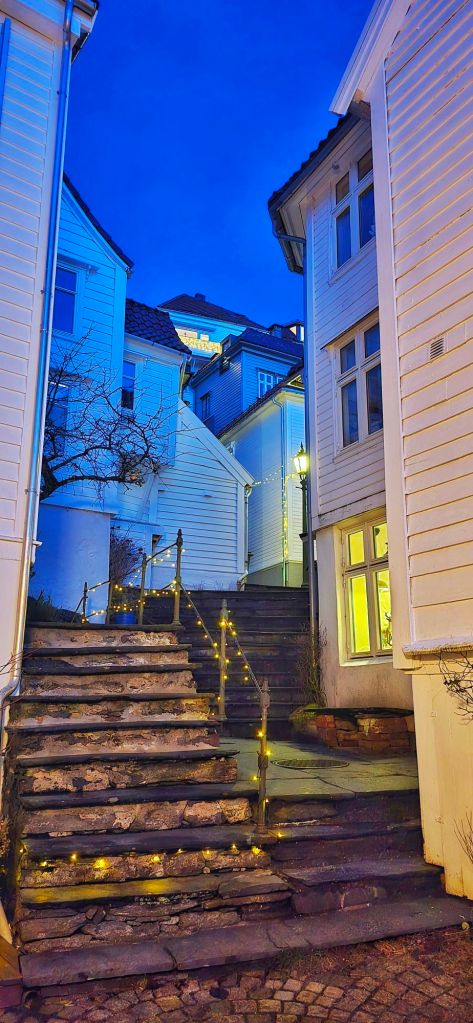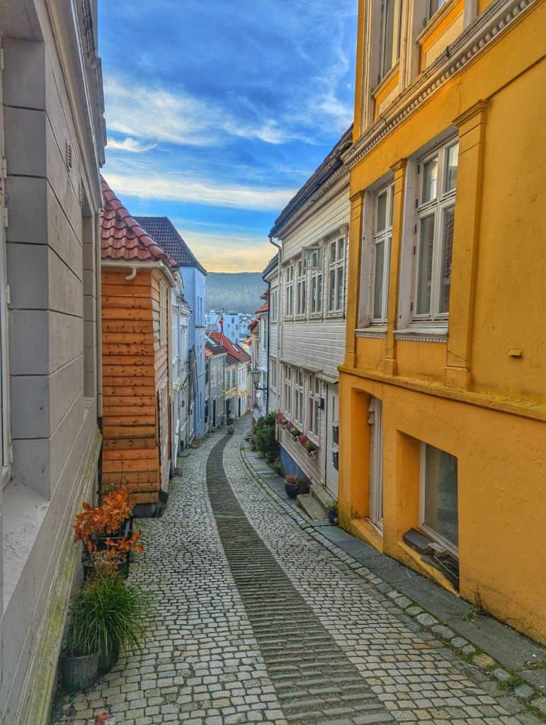 This area forms part of Bergen’s old residential heart, known for its steep, narrow alleyways, locally called ‘smau’ and rows of white wooded houses dating back to the 18th century. We found ourselves weaving through these tight lanes, particularly around areas like Steinkjellersmauet and Ovre Hamburgersmauet, where the city feels wonderfully unchanged.