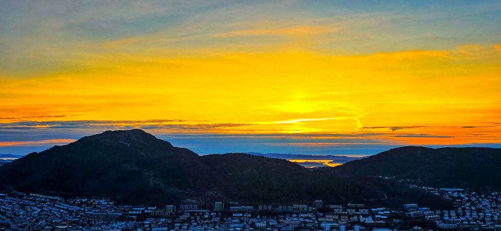 We kept walking, not really thinking about where we were going, until we realised we were almost at the top of the hill, heading in the direction of the Floibanen funicular route. With icy paths, falling temperatures and no proper winter gear, common sense finally kicked in and we headed back down.