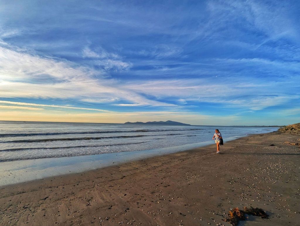 That evening we headed straight to the beach. We walked a good stretch of it first. The coastline felt wild and open, with the sound of waves rolling in and the hills rising behind the village.