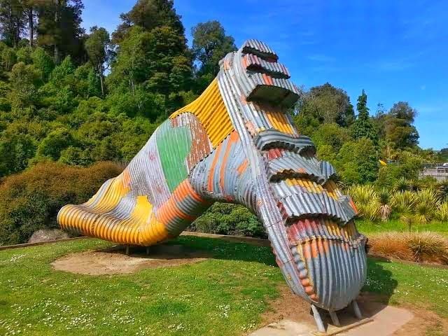 The town hosts an annual Gumboot Day in March, featuring a renowned gumboot (wellies to us) throwing competition and a famous giant corrugated iron sculpture of a gumboot.