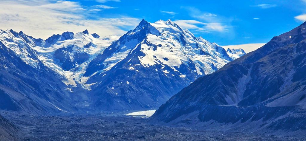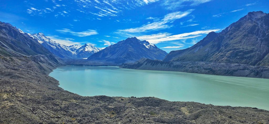The Tasman Glacier (Haupapa) is New Zealands longest and largest glacier, located in Aoraki/Mount Cook National Park, measuring over 23-27 km long, 4 km wide and 600 metres deep.