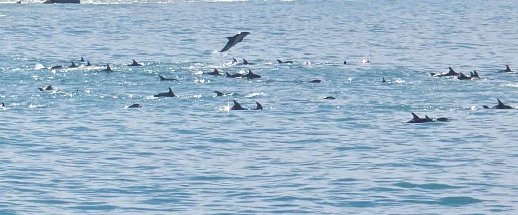 We saw three Sperm Whale, one Humpback Whale, and hundreds of dolphins swimming and playing around the boat, so funny to watch.